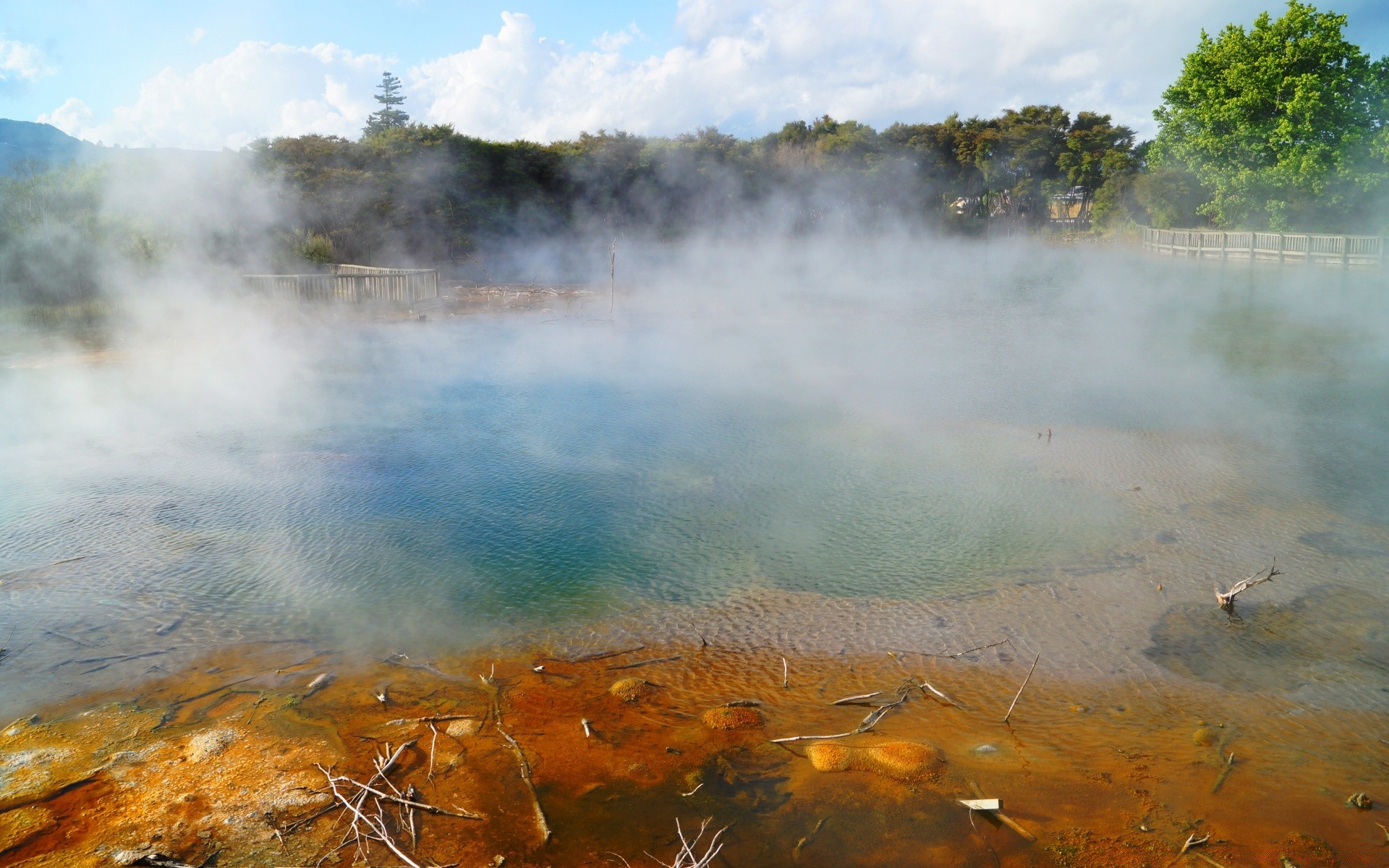 Gorące jezioro. para nad jeziorem