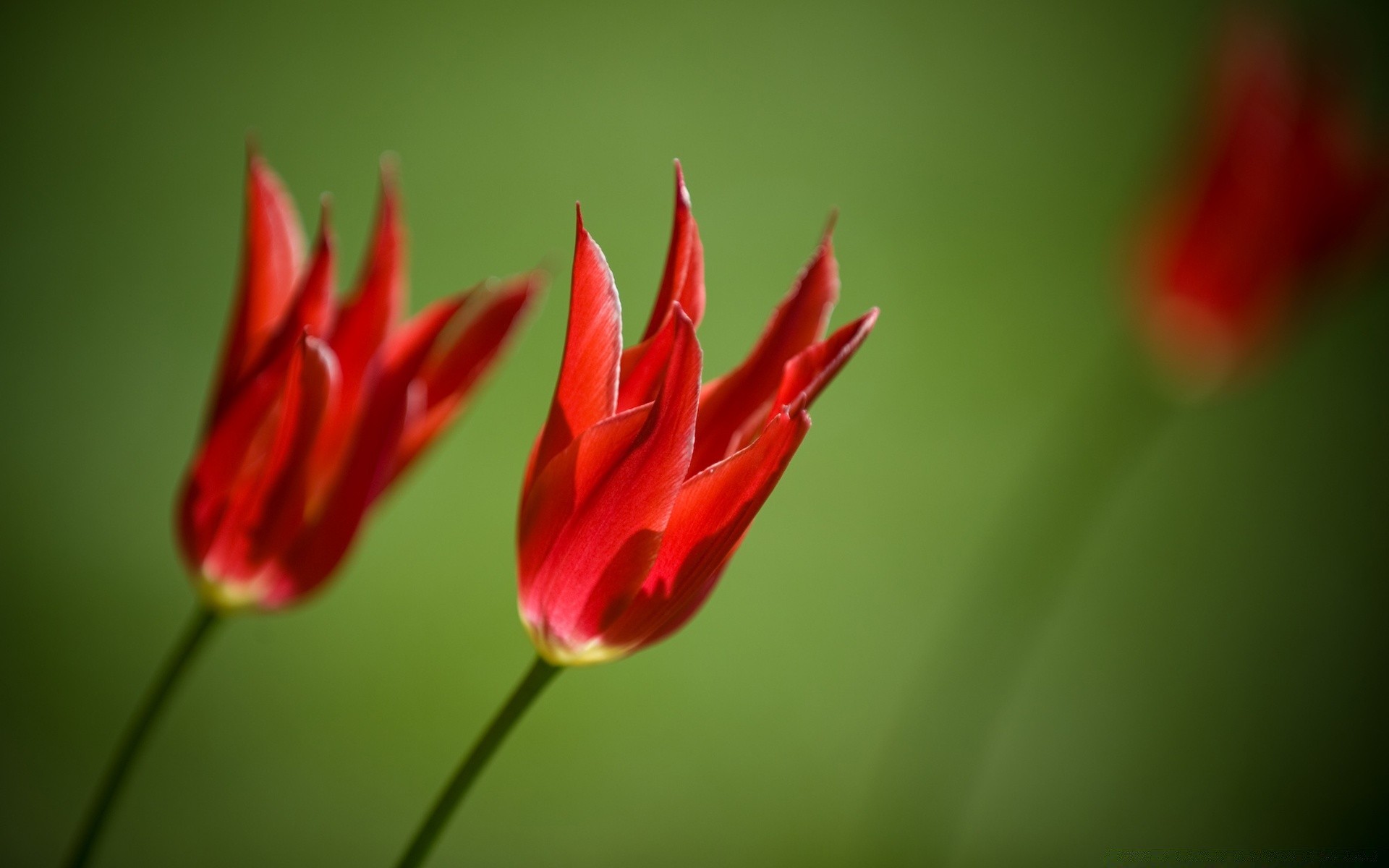 Para czerwonych tulipanów na zielonym tle