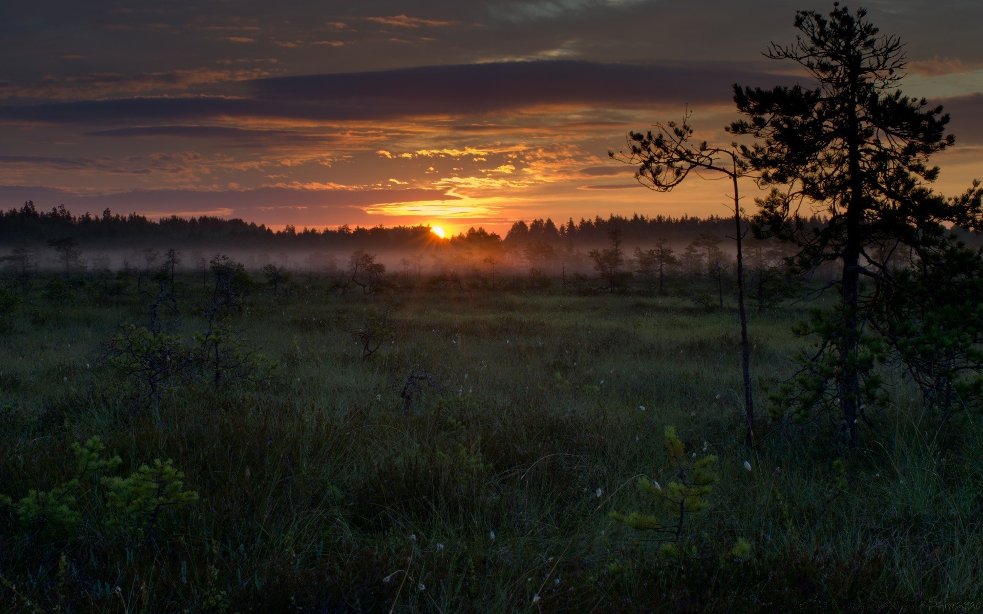 Krajobraz. Siano. Zachód słońca na łonie natury