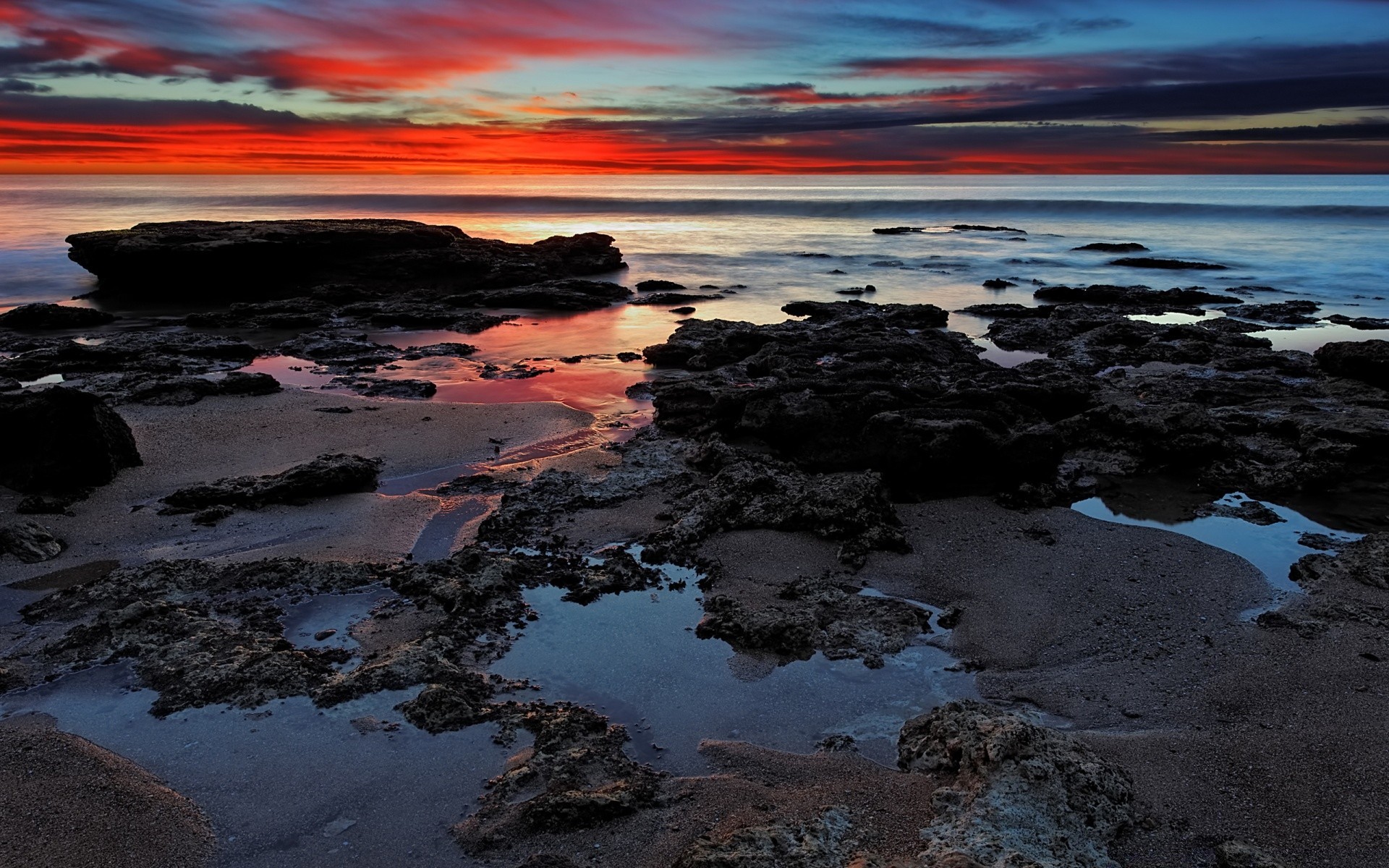 Zachód słońca na dzikiej plaży. Niezbadane miejsca