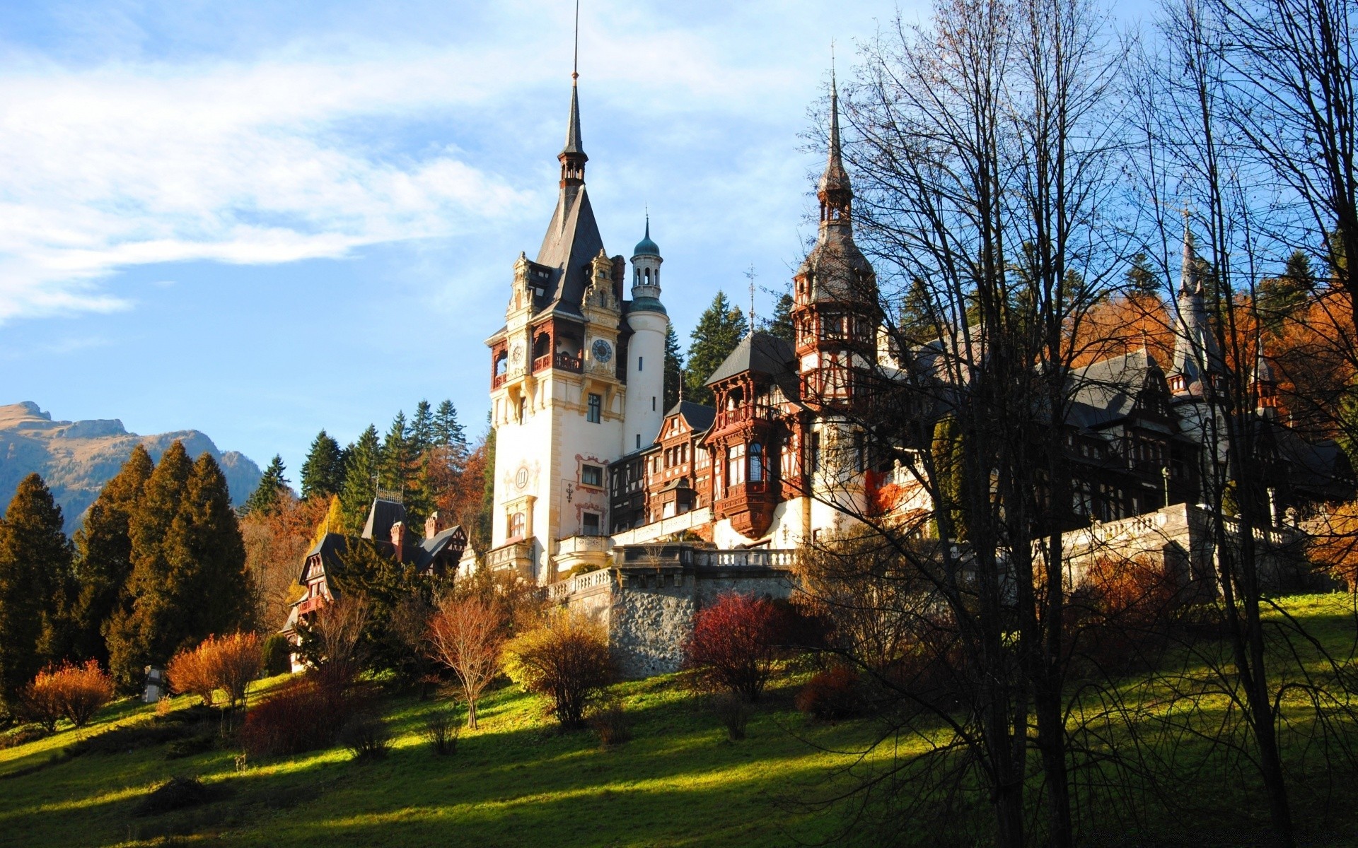 Piękny krajobraz na zamku z odbiciem w wodzie