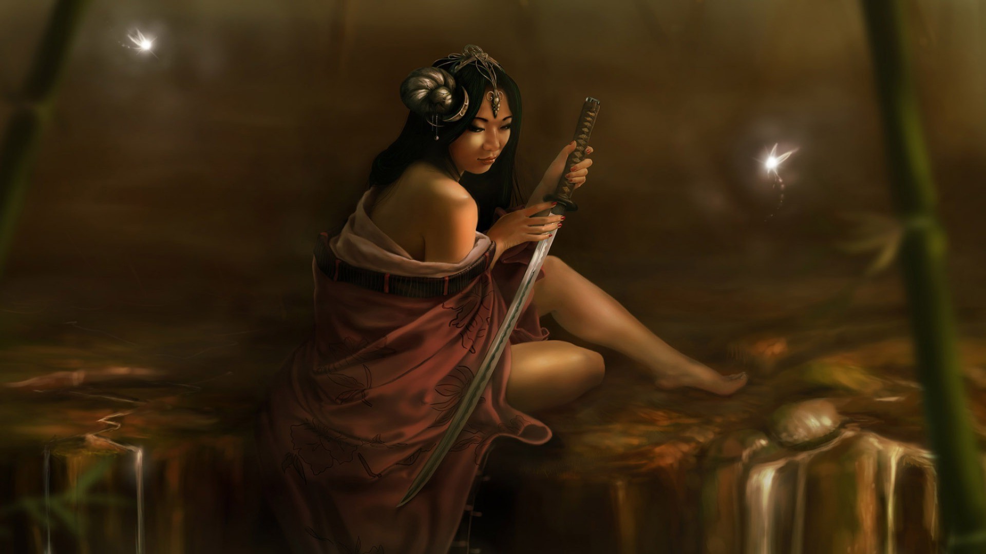 Uzbrojona bohaterka anime ze słuchawkami i plecakiem