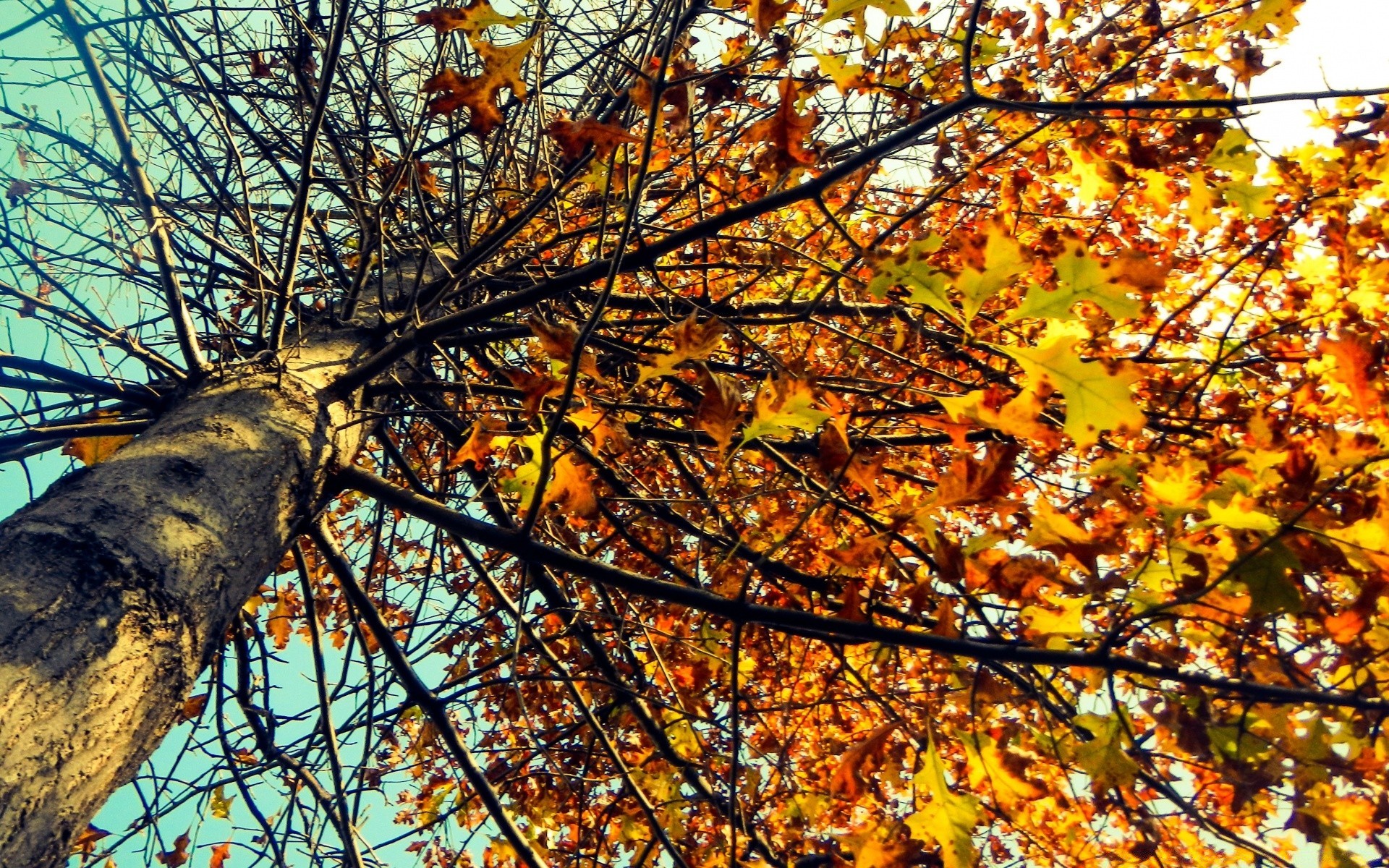 Opadają Ostatnie jesienne liście. Jesienne drzewo. Jesienny olbrzym. Natura