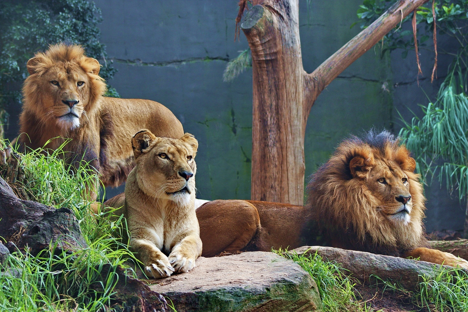 Lwia duma w zoo przy ścianie
