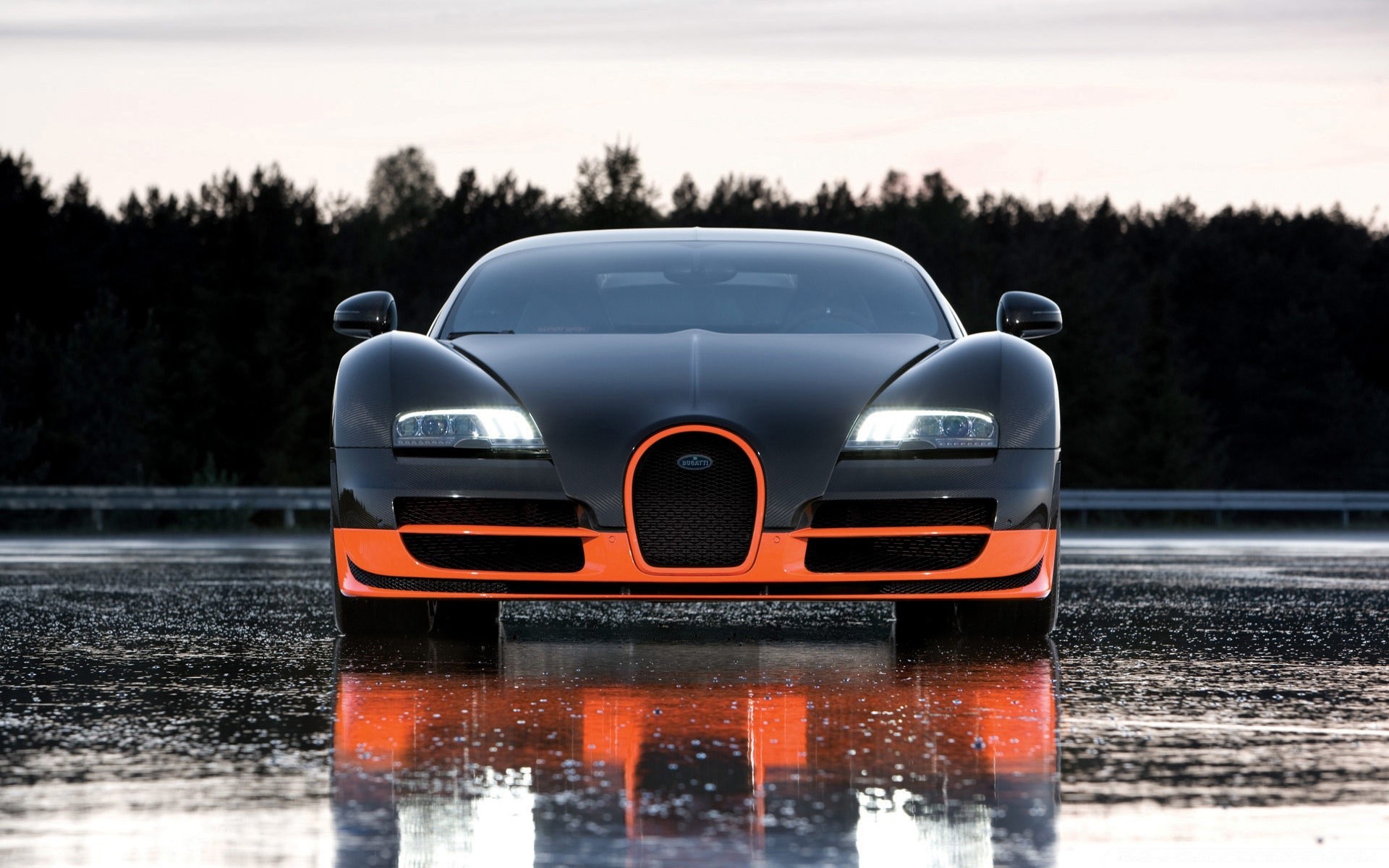 Sportowe auto na mokrym asfalcie