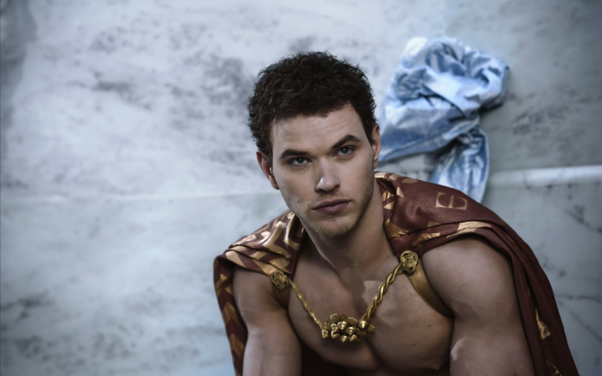 Mężczyzna w pelerynie na szarym tle