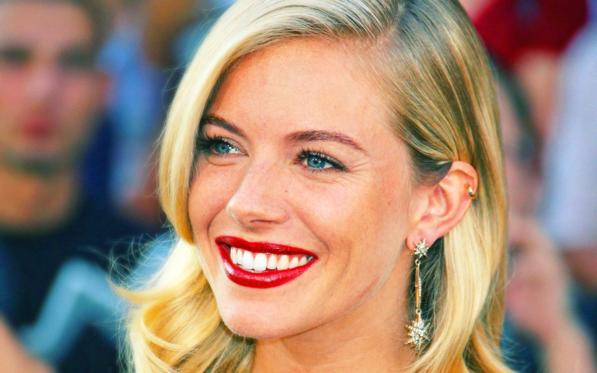 Portret dziewczyny z czerwoną szminką niebieskie oczy