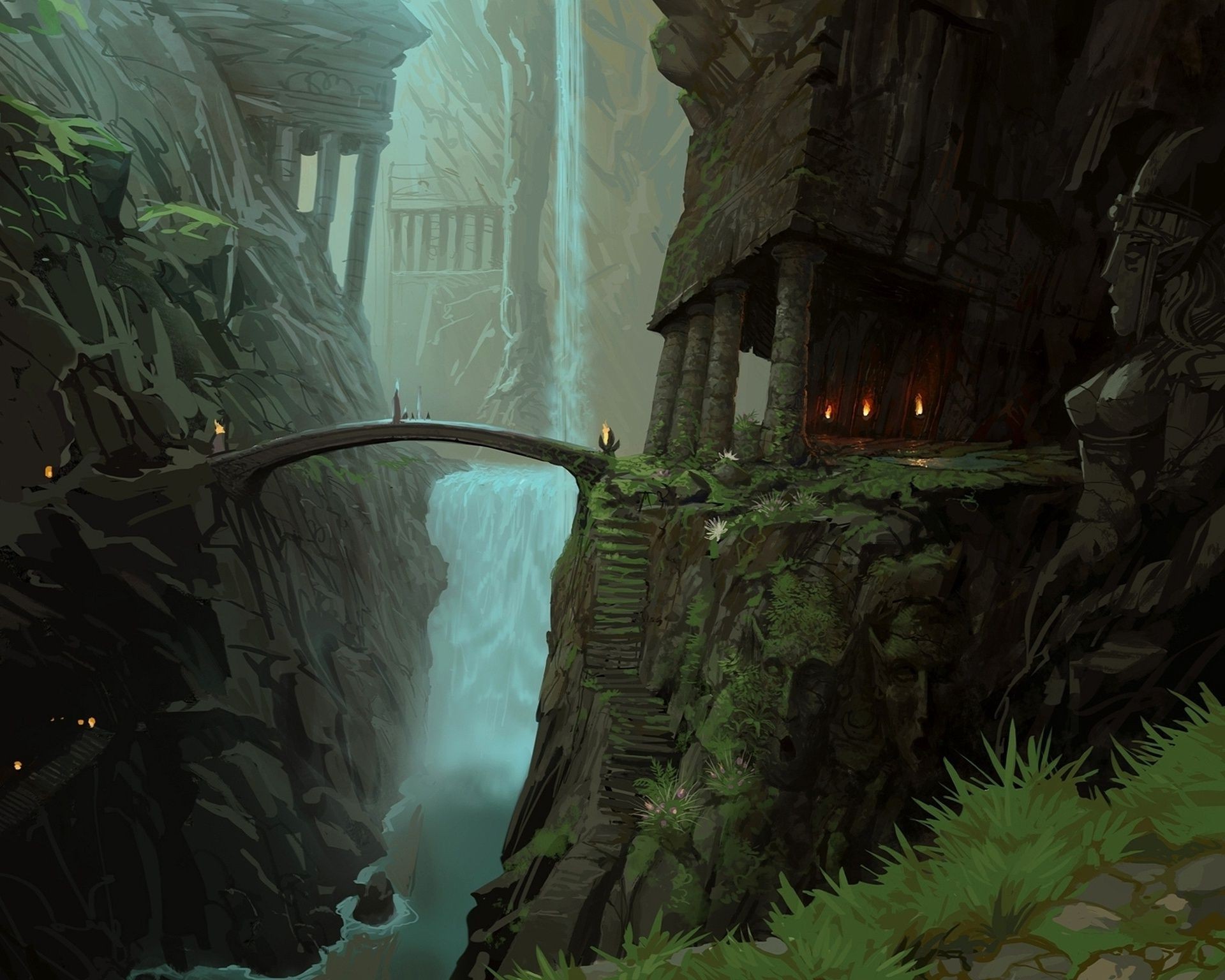 Gra fantasy. wojownik o białych włosach wśród zamków i smoków. twarz dziewczyny na tleGra fantasy. Wojownik o białych włosach wśród zamków i smoków. Twarz dziewczyny na tle