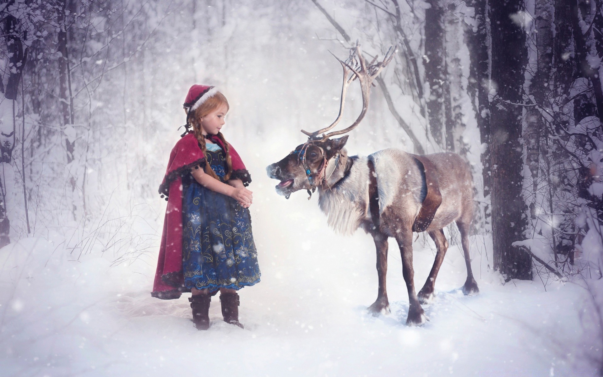 Świąteczna sesja zdjęciowa dziecka w śnieżnym lesie