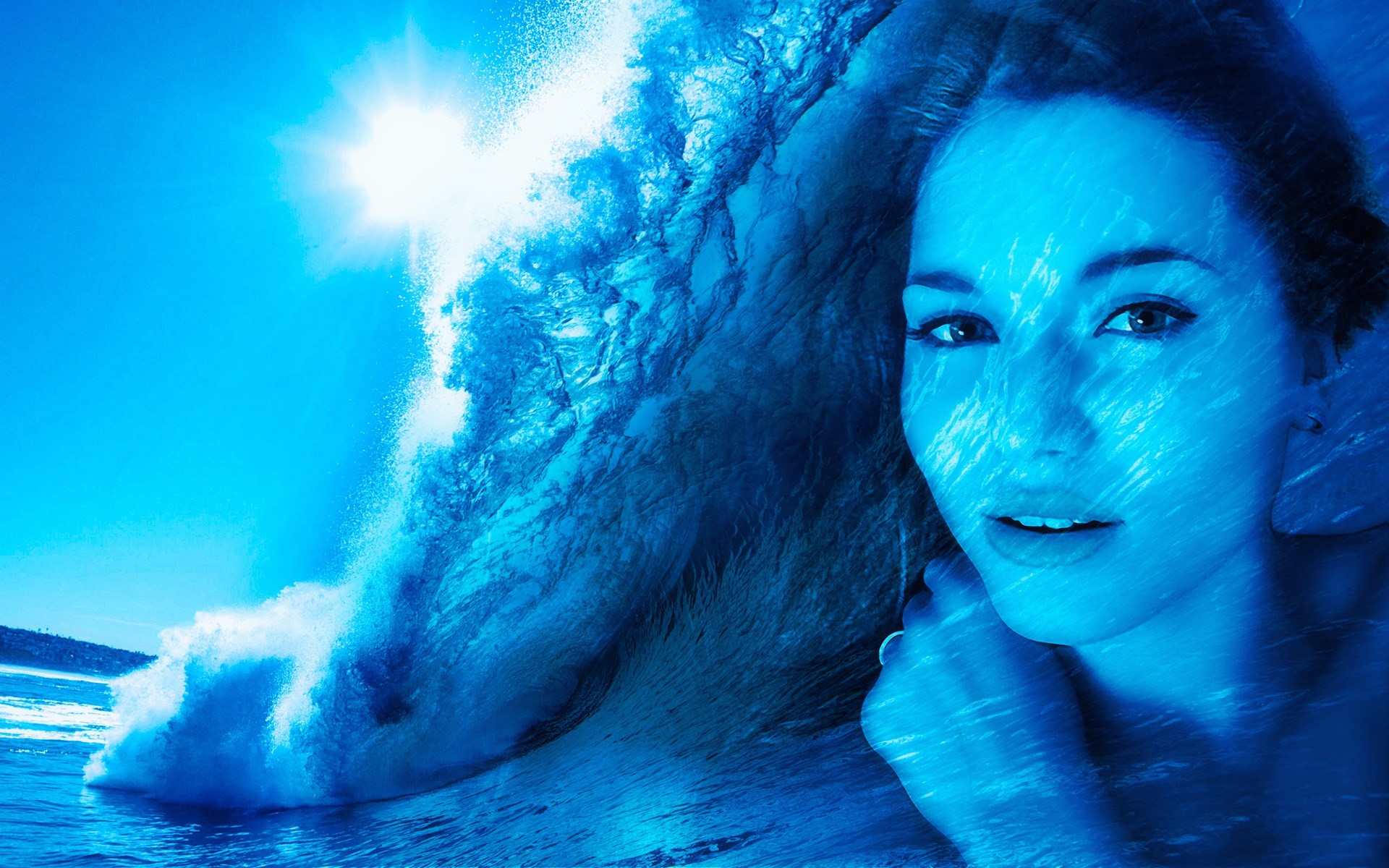 Dziewczyna na tle wielkiej fali