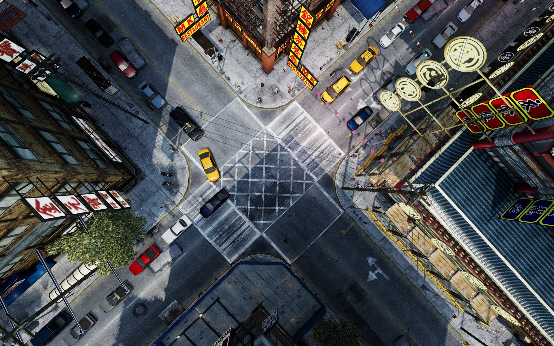 Patrzę na skrzyżowanie miasta z wysokości dachu domówPatrzę na skrzyżowanie miasta z wysokości dachu domów