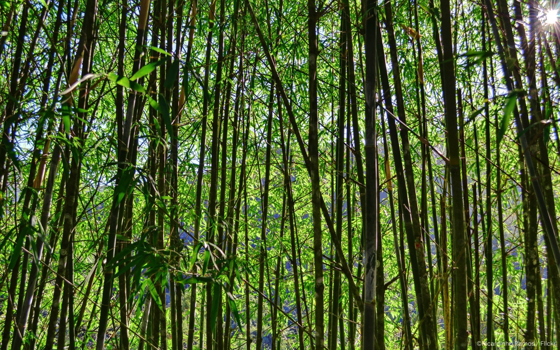 Panda z kreskówek je ryby bambusowymi pałeczkami