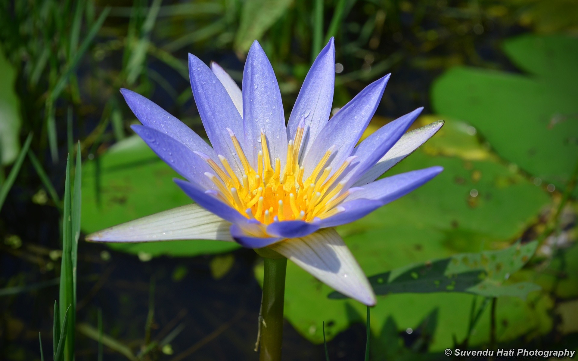 Dziewczyna K stoi na kamieniu w sztucznym stawie w ogrodzie pod łukiem