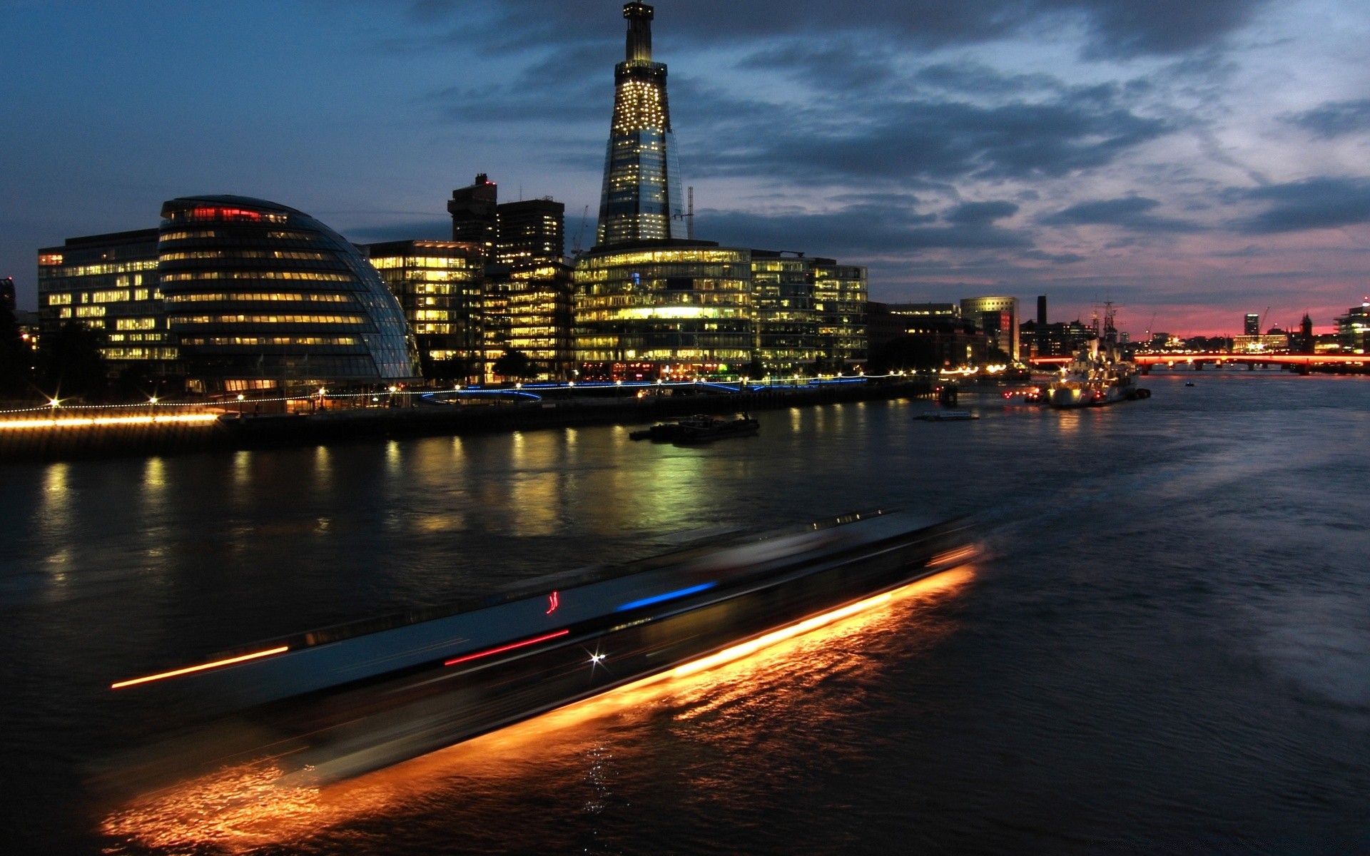 Światło mostu w nocy i jego blask w wodzie