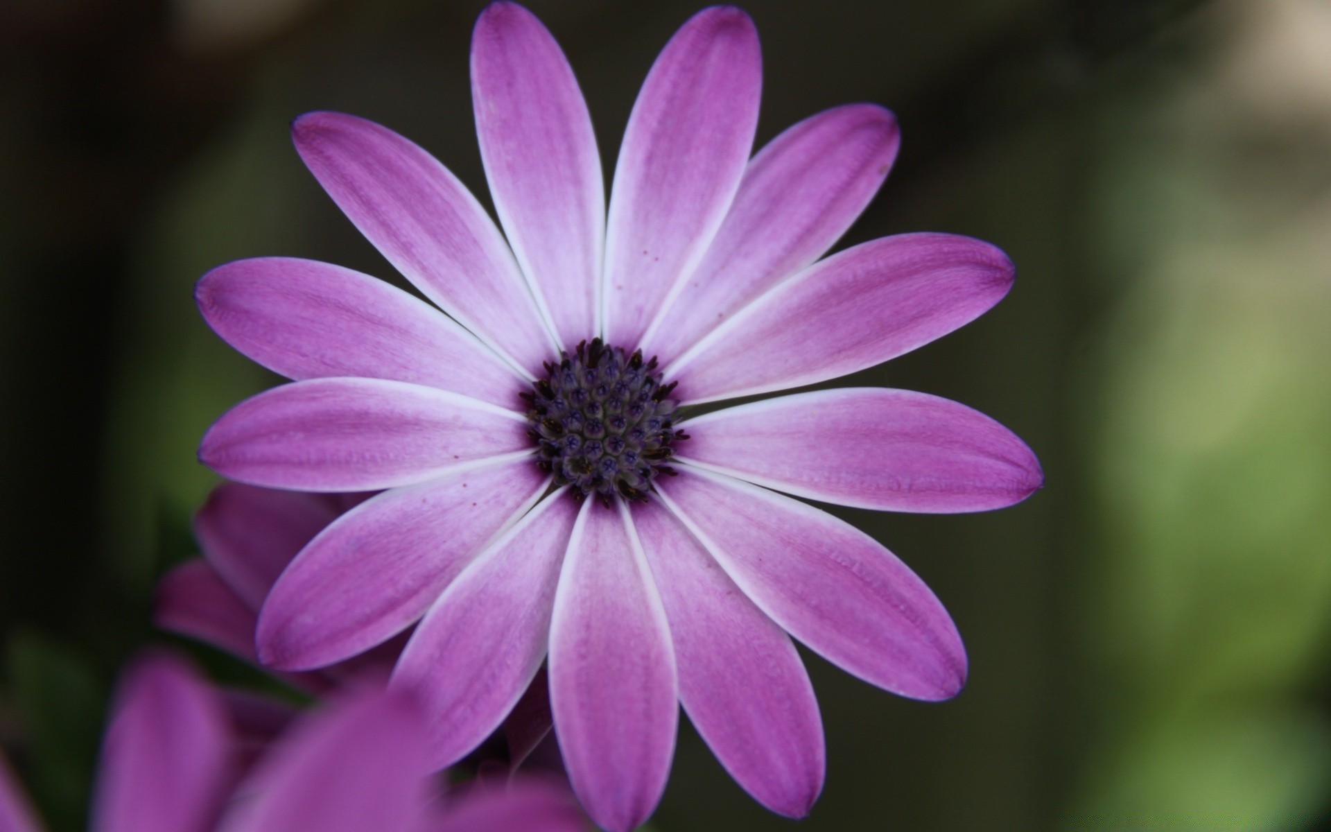 Kwiat z fioletowymi płatkami. Rozmyte tło