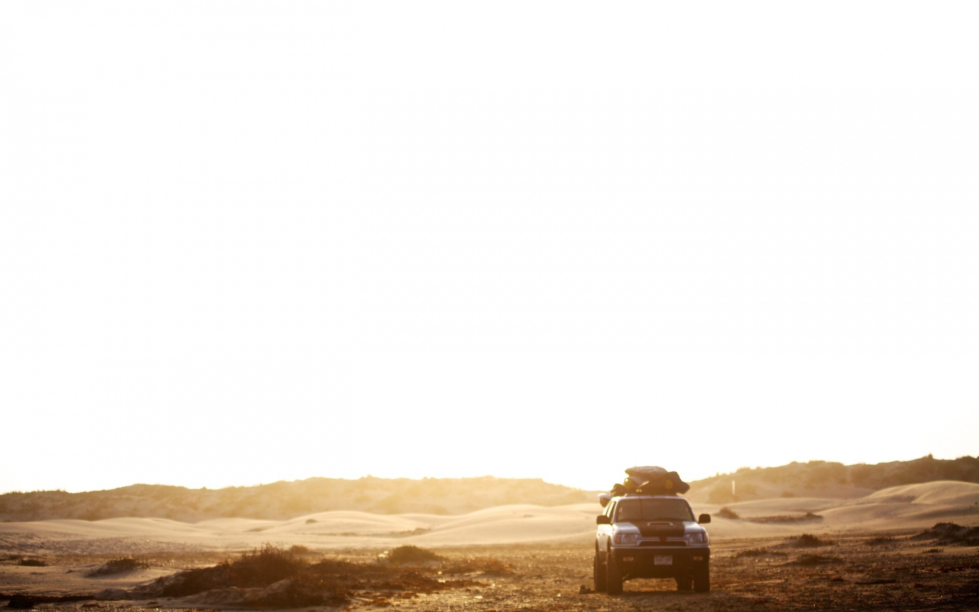 Samotny SUV jedzie przez pustynię