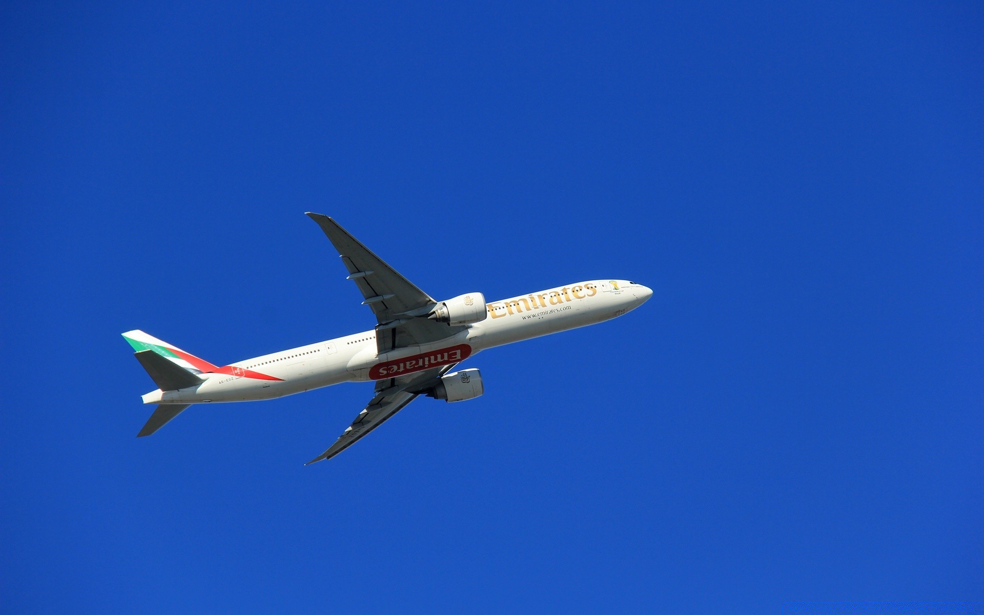 Śnieżnobiały samolot pasażerski na jasnoniebieskim niebie