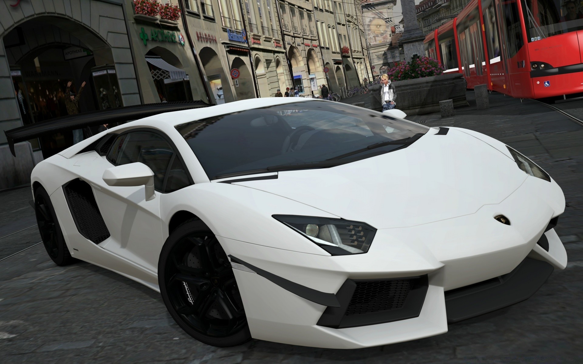 Samochód wyścigowy w kolorze złotym przed kawiarnią
