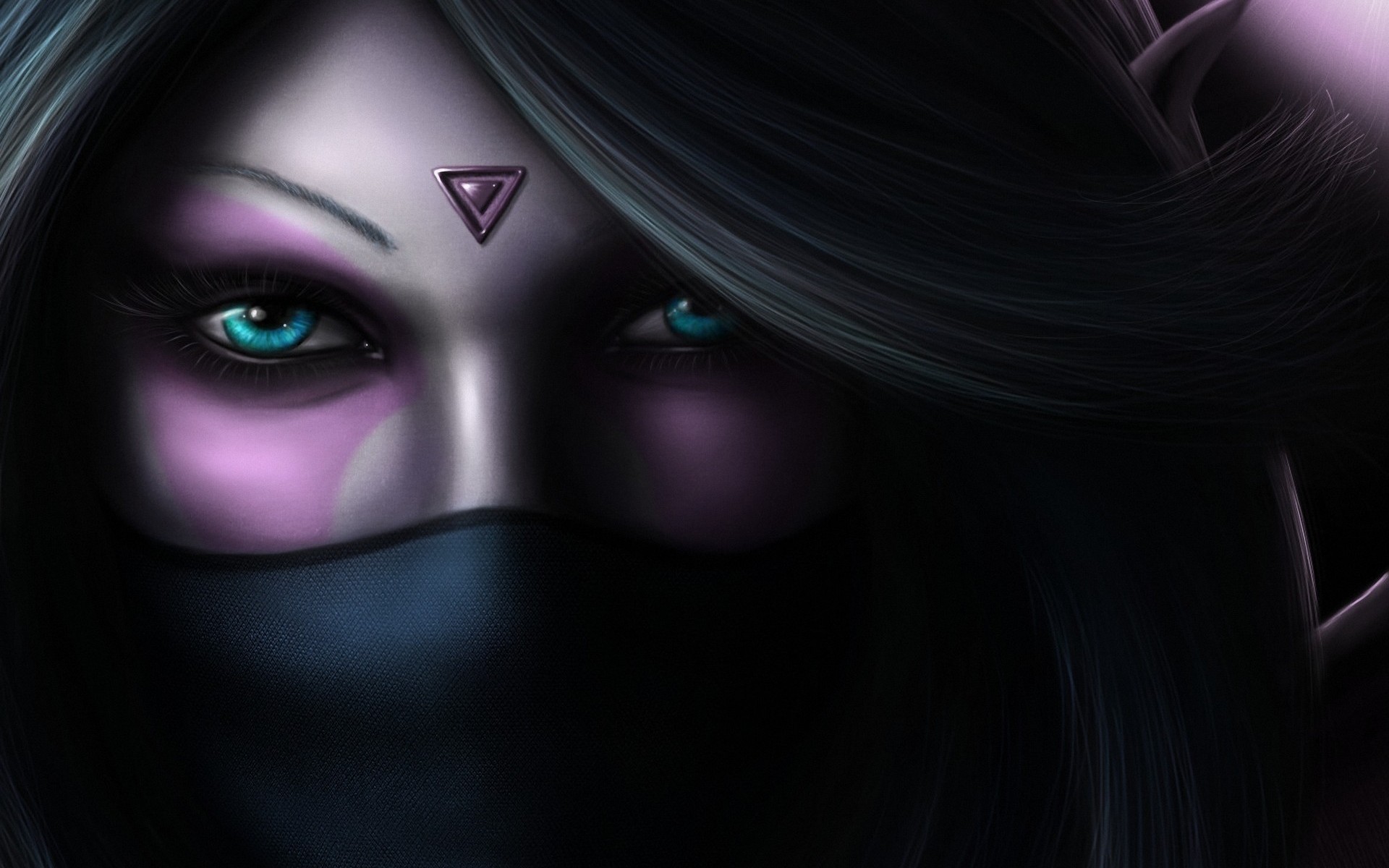 Anime Dziewczyny w czarnej masce i trójkącie między oczami