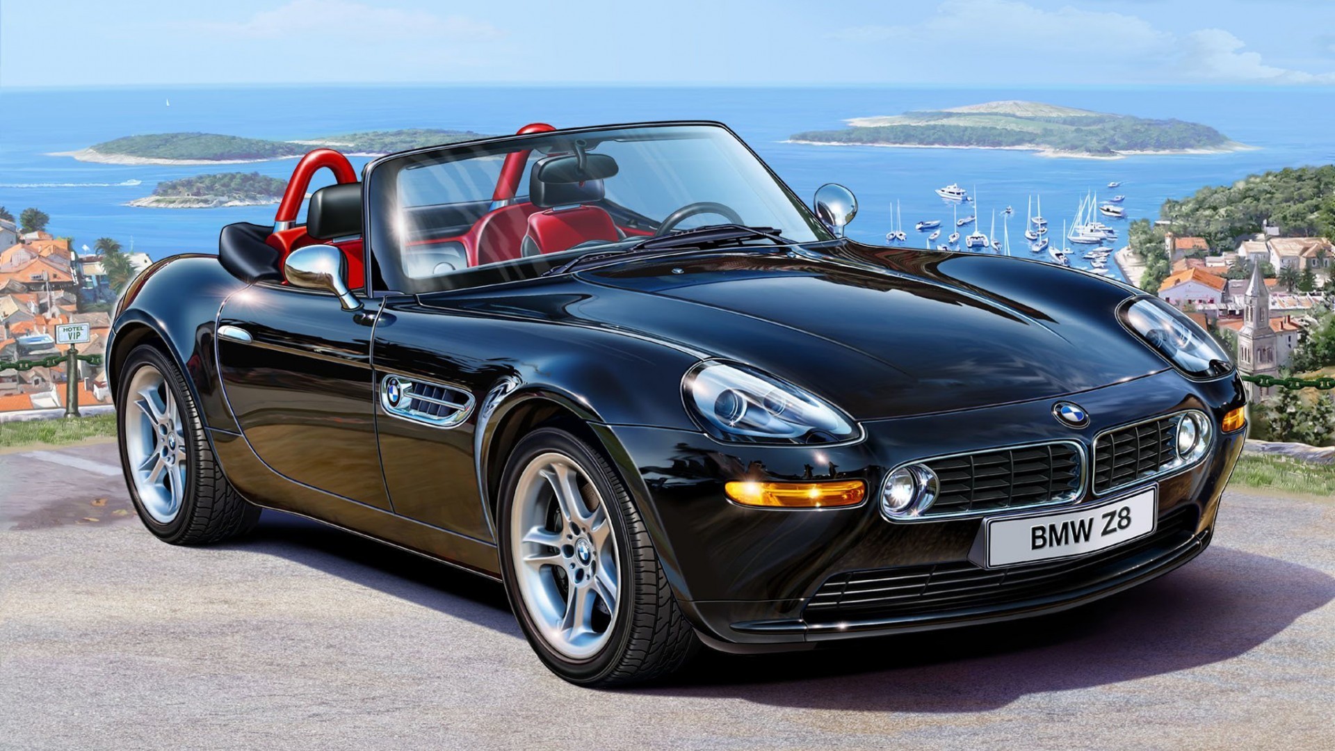 Niebezpieczna dziewczyna obok drogiego samochodu