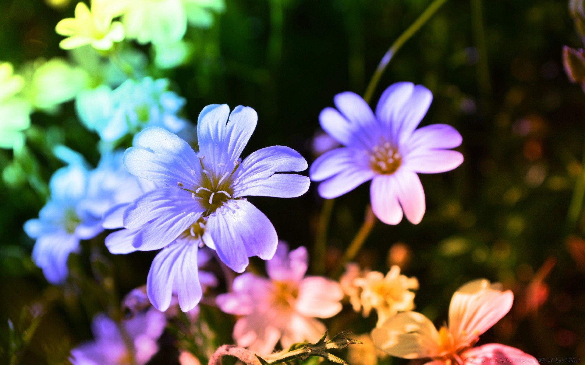 Bukiet żółtych i fioletowych kwiatów na ciemnym tle