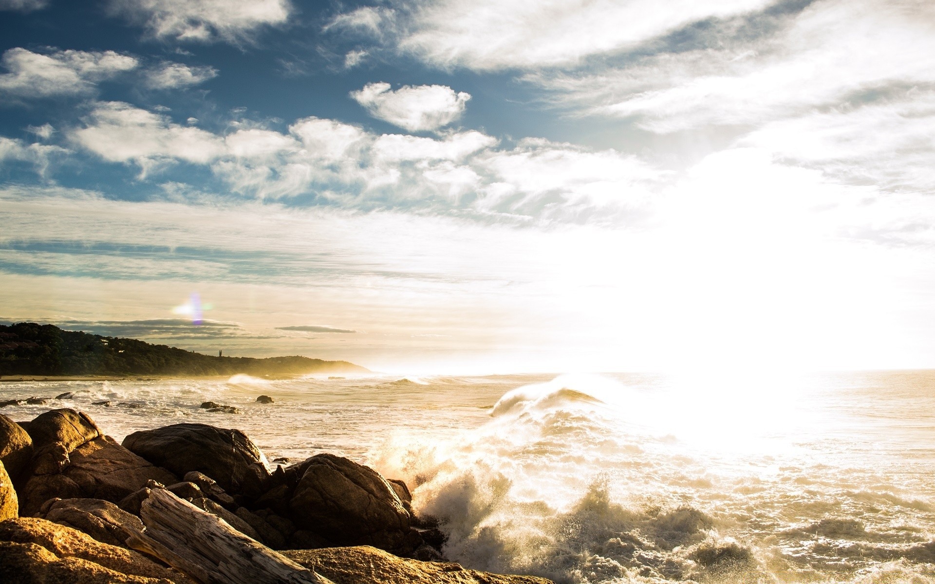Stojąc na plaży, jasne słońce świeci tak przyjemnie w oczy