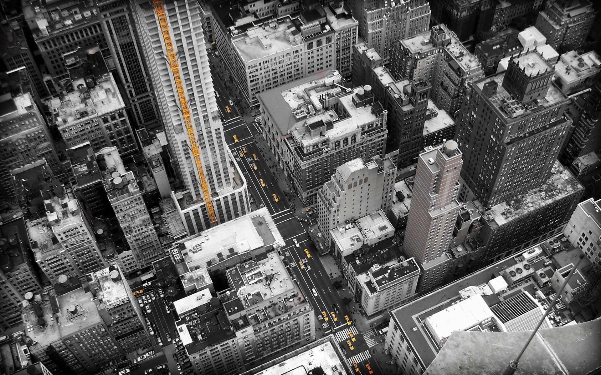 Czarno-biały obraz drapaczy chmur z góry