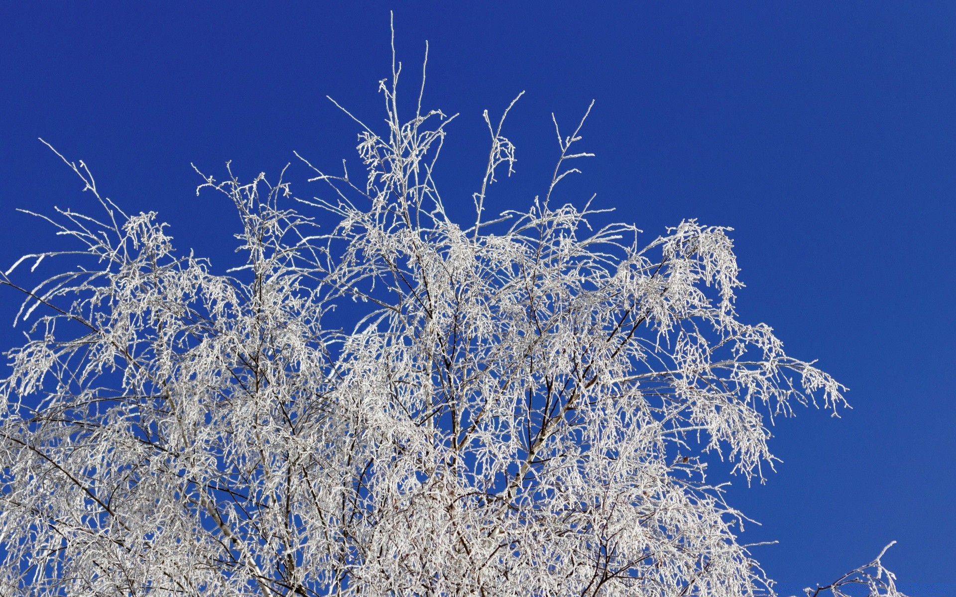 Gałęzie w szron na tle błękitnego nieba