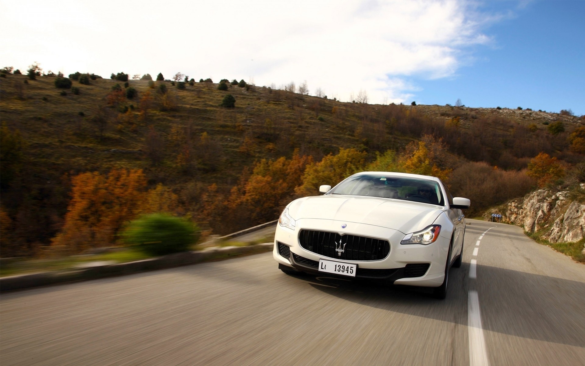 Maserati biała na pięknej drodze