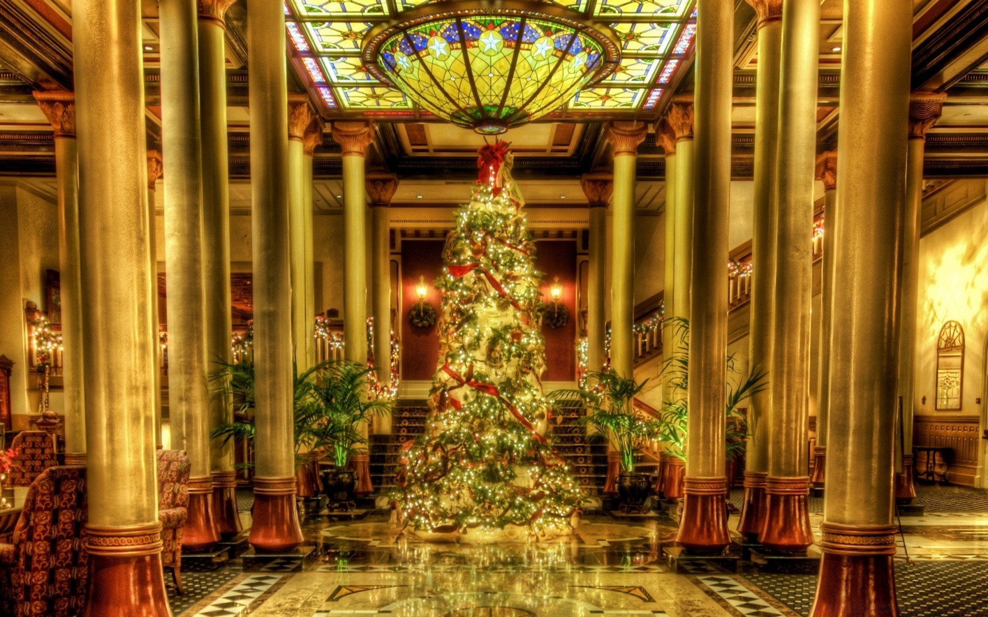 Elegancka choinka w środku lasu. Kupie prezenty pod choinkę