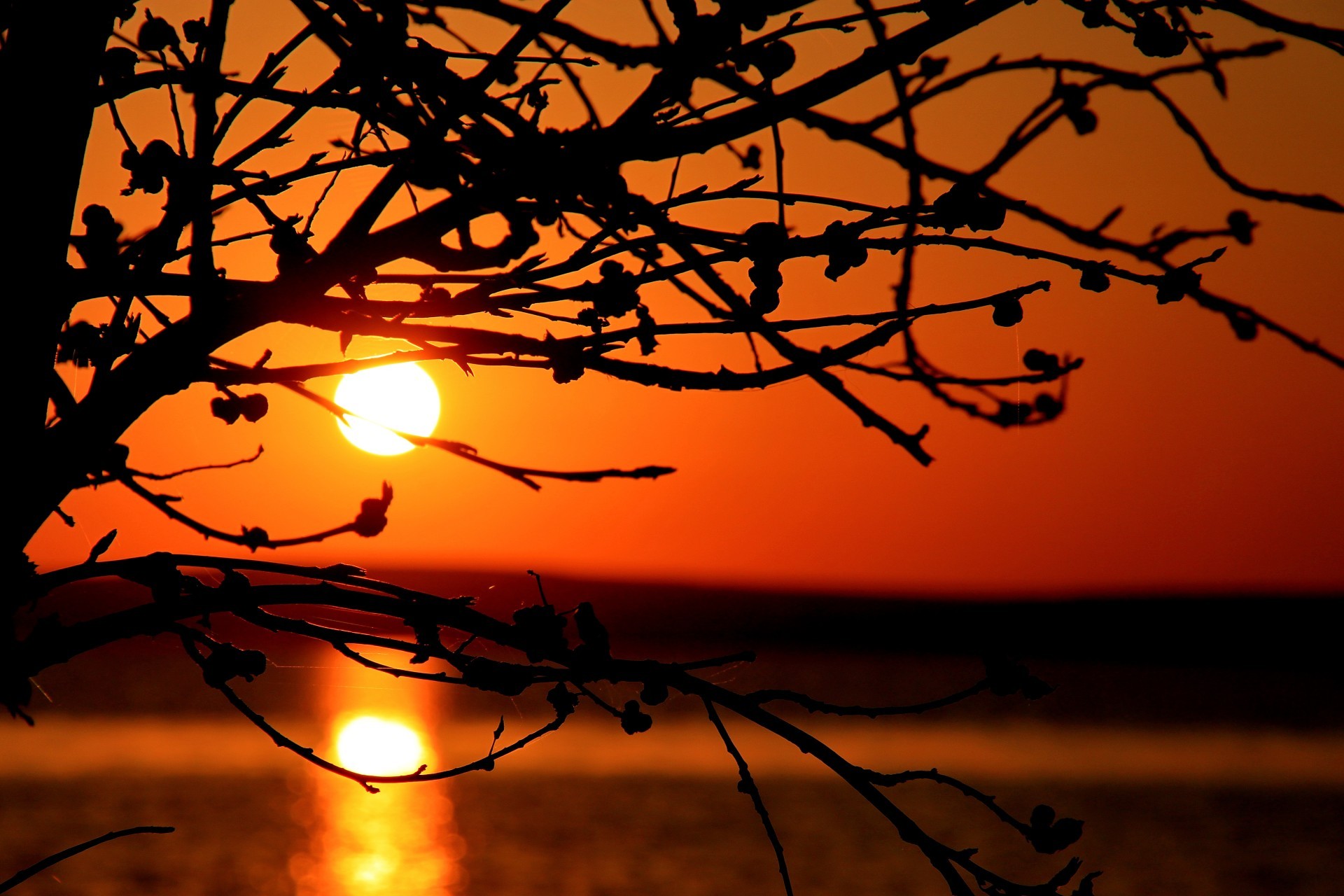 Gałęzie kwitnącej jabłoni na niebieskim tle