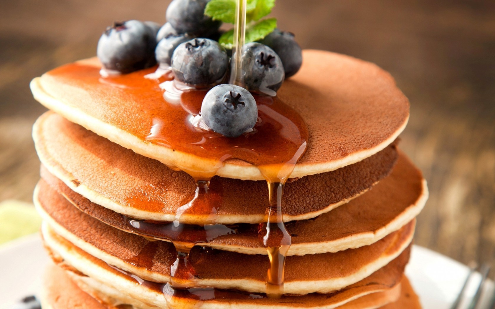Pancakes na śniadanie z syropem klinowym i jagodami
