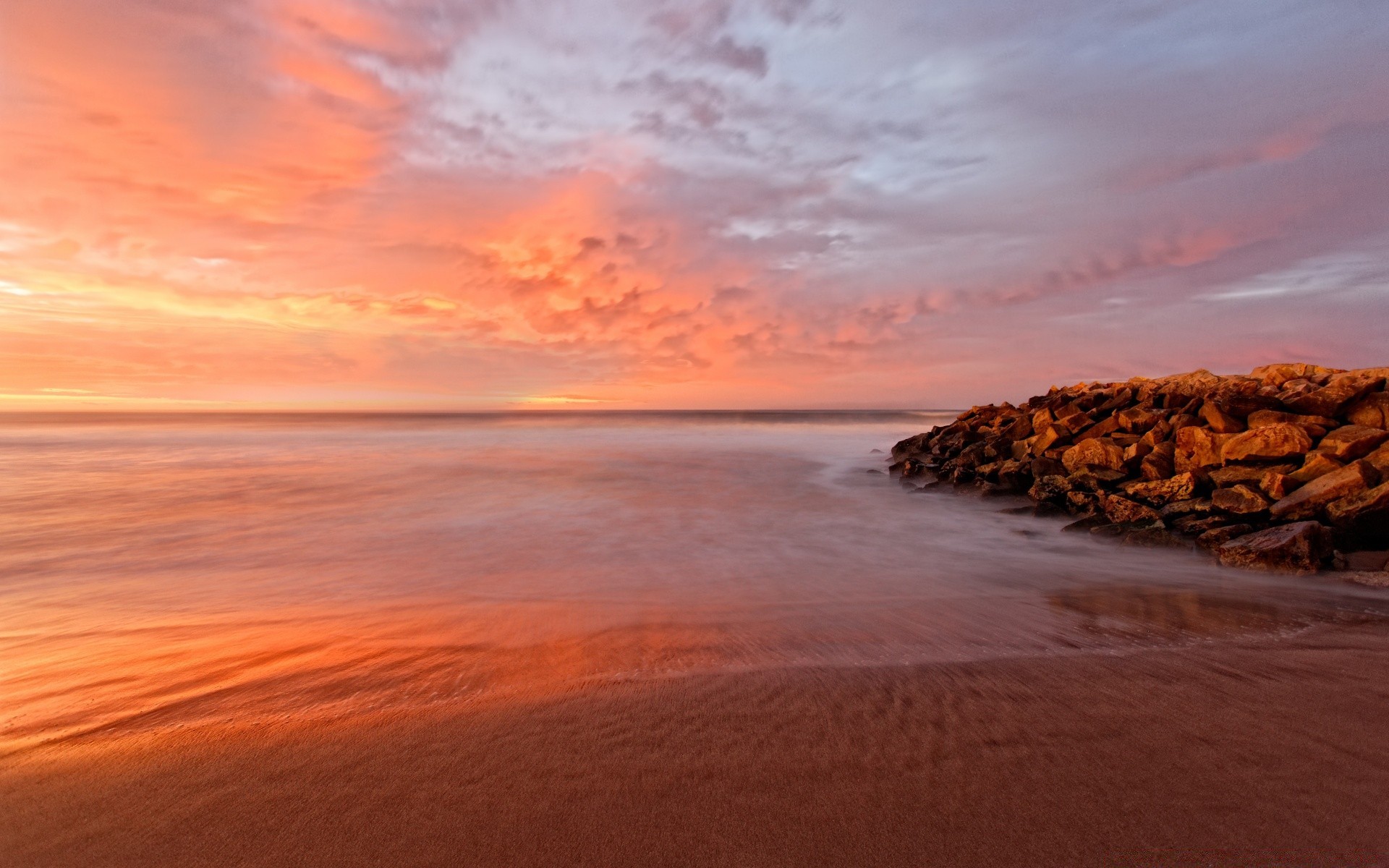 Zachód słońca: piękne niebo i woda