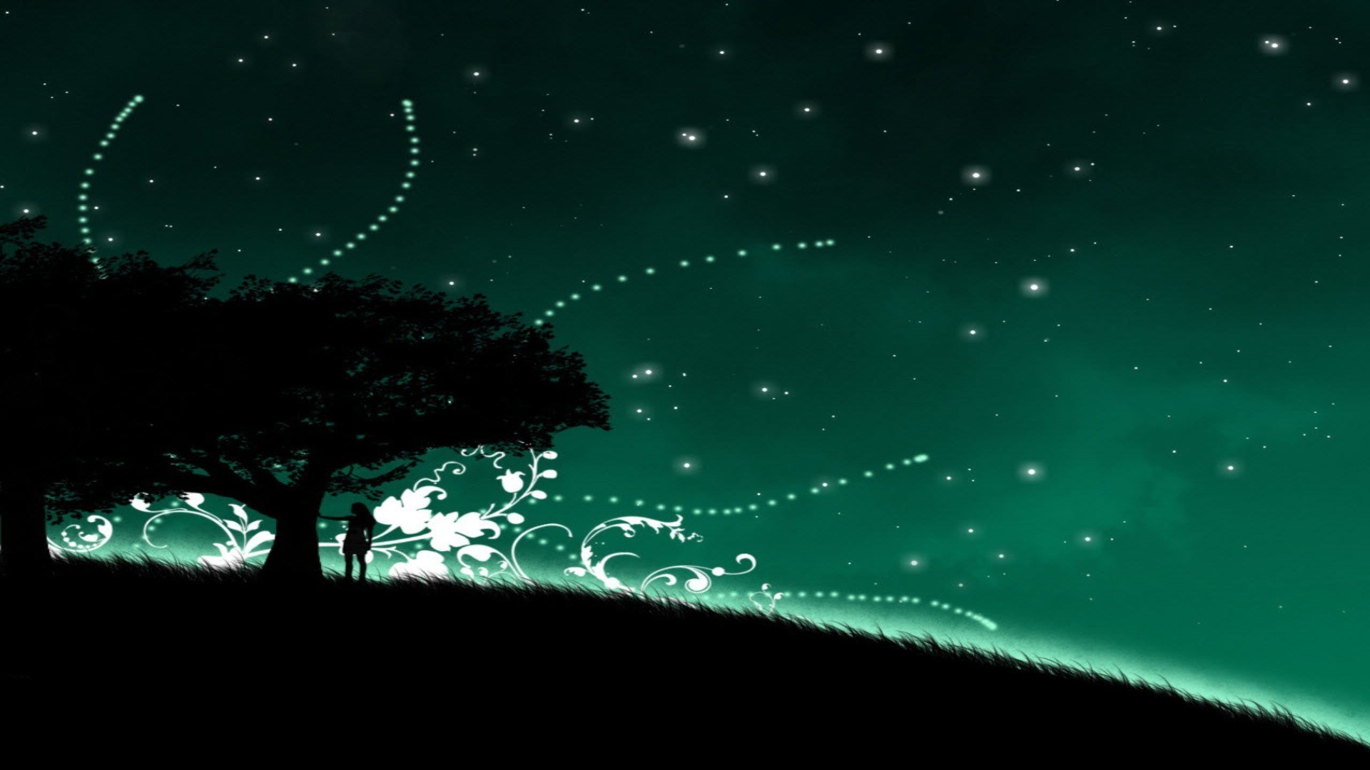 Nocny horyzont i gwiaździste niebo