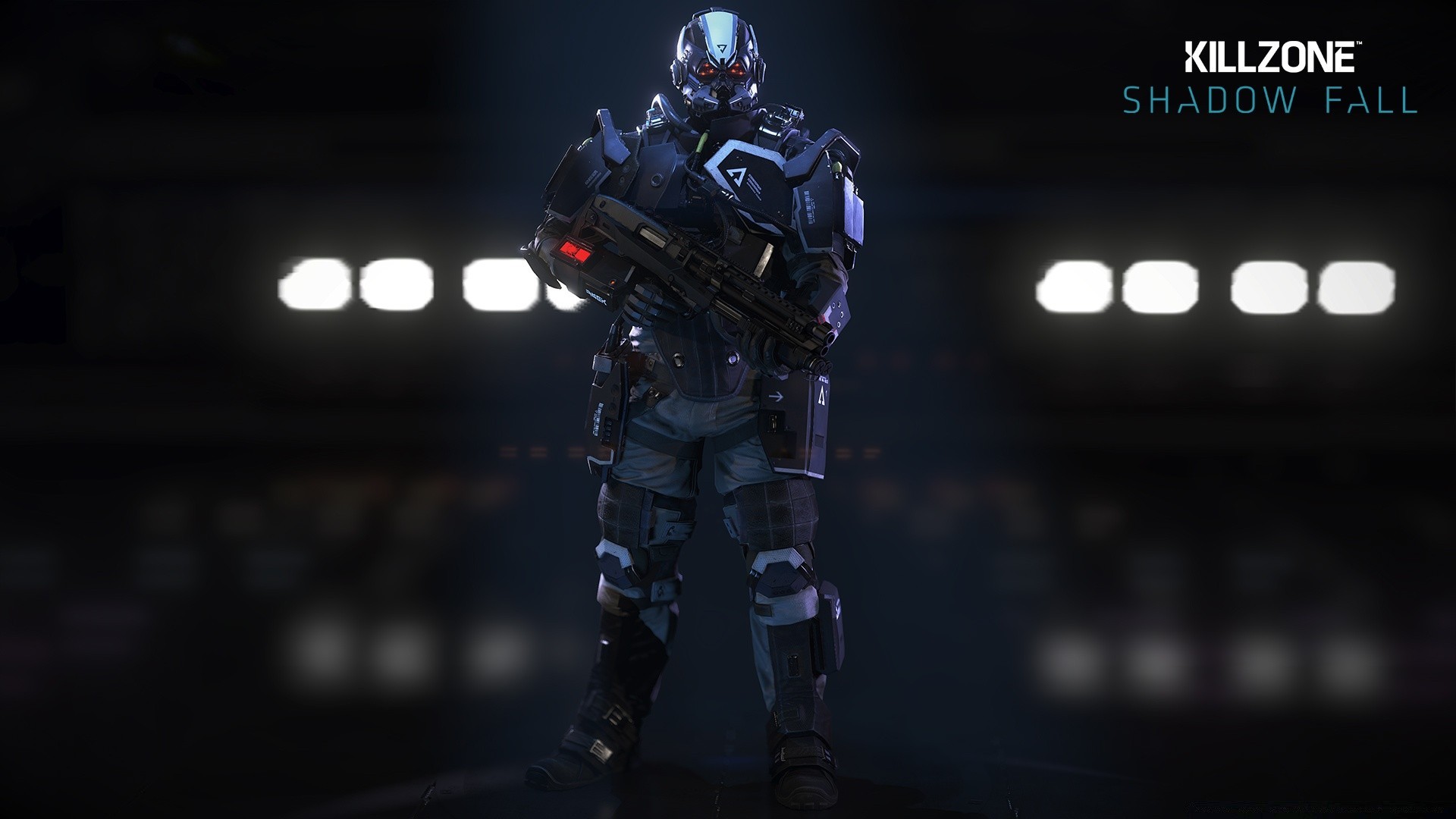 Robot Cyborg na ciemnym tle z płonącymi lampami
