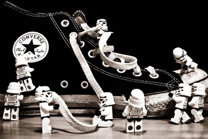 LEGO Men próbuje rozebrać trampki