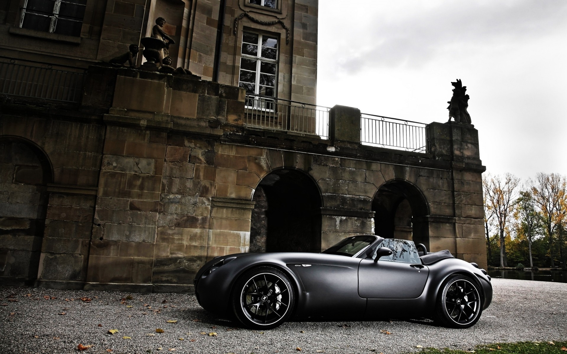 Czarny volkswagen z czerwonymi felgami jedzie do fabryki