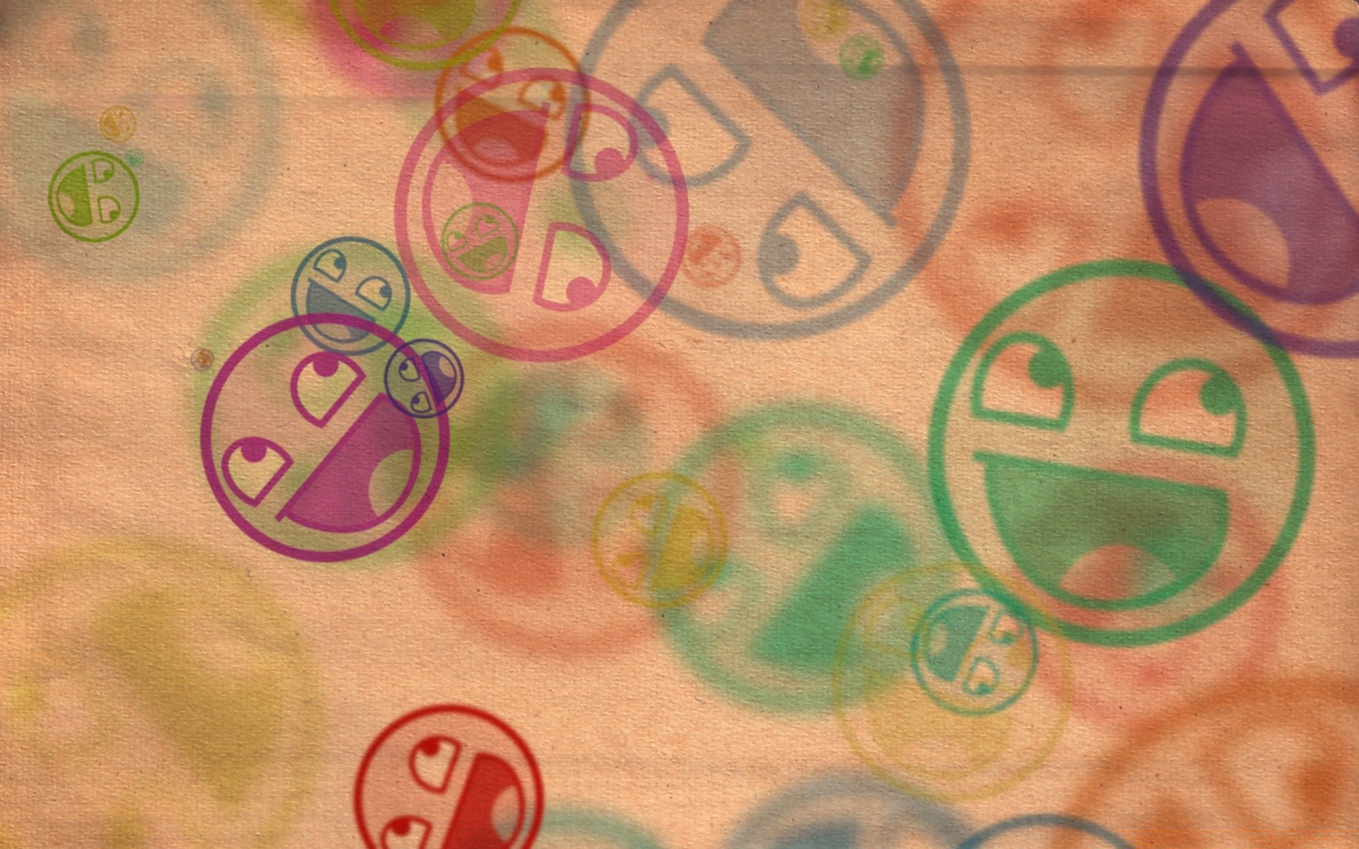 Ilustracja małego człowieka na czarnym tle z kółkami i znakiem toalety