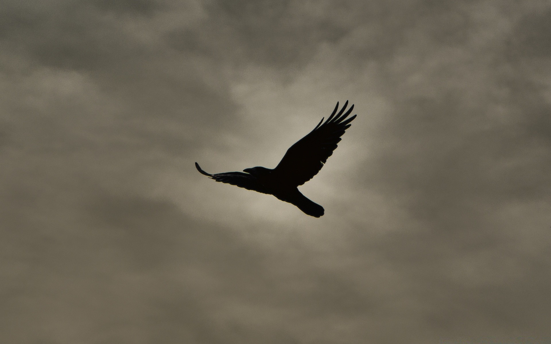 Czarny ptak na szarym niebie