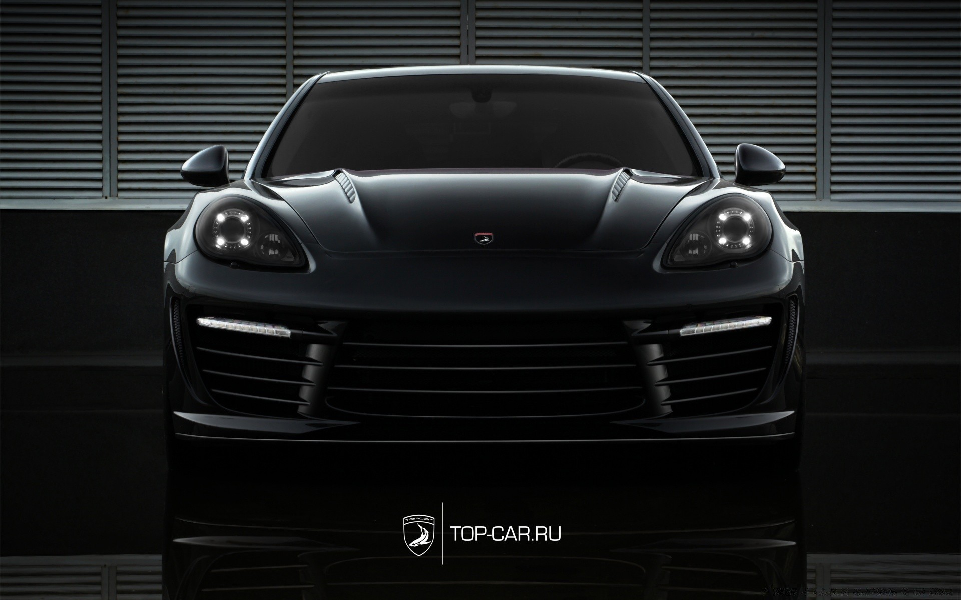 Czarny agresywny Porsche w budynku
