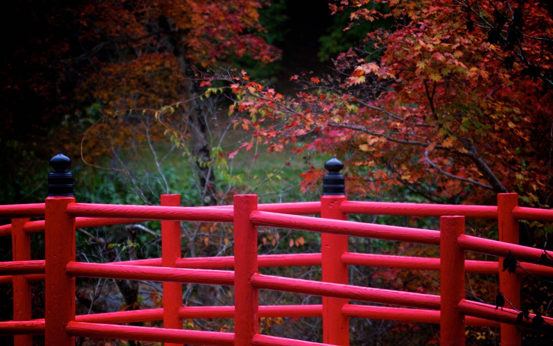 Czerwone ogrodzenie doskonale uzupełnia jesienną atmosferę
