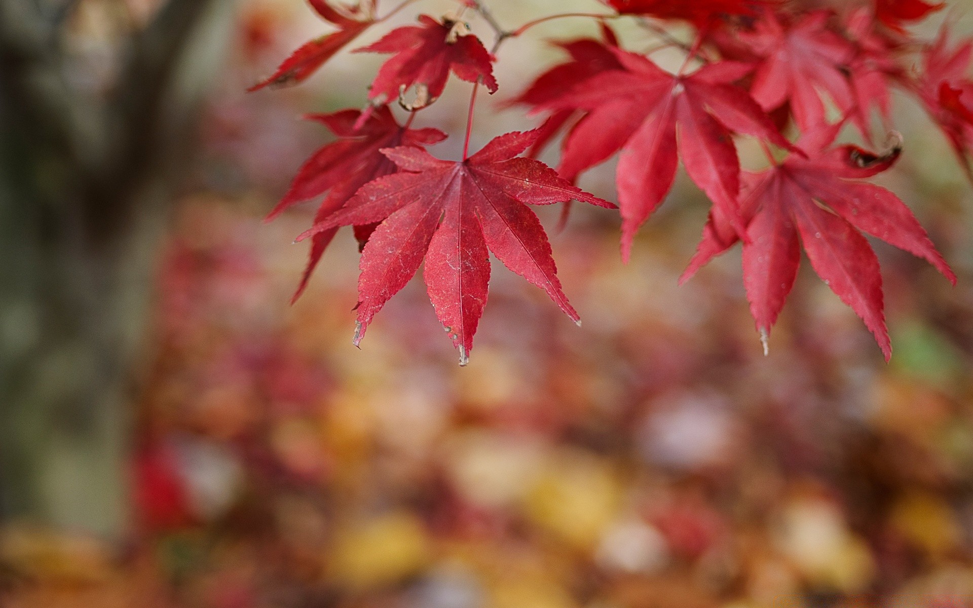 Czerwone liście na jesiennych drzewach