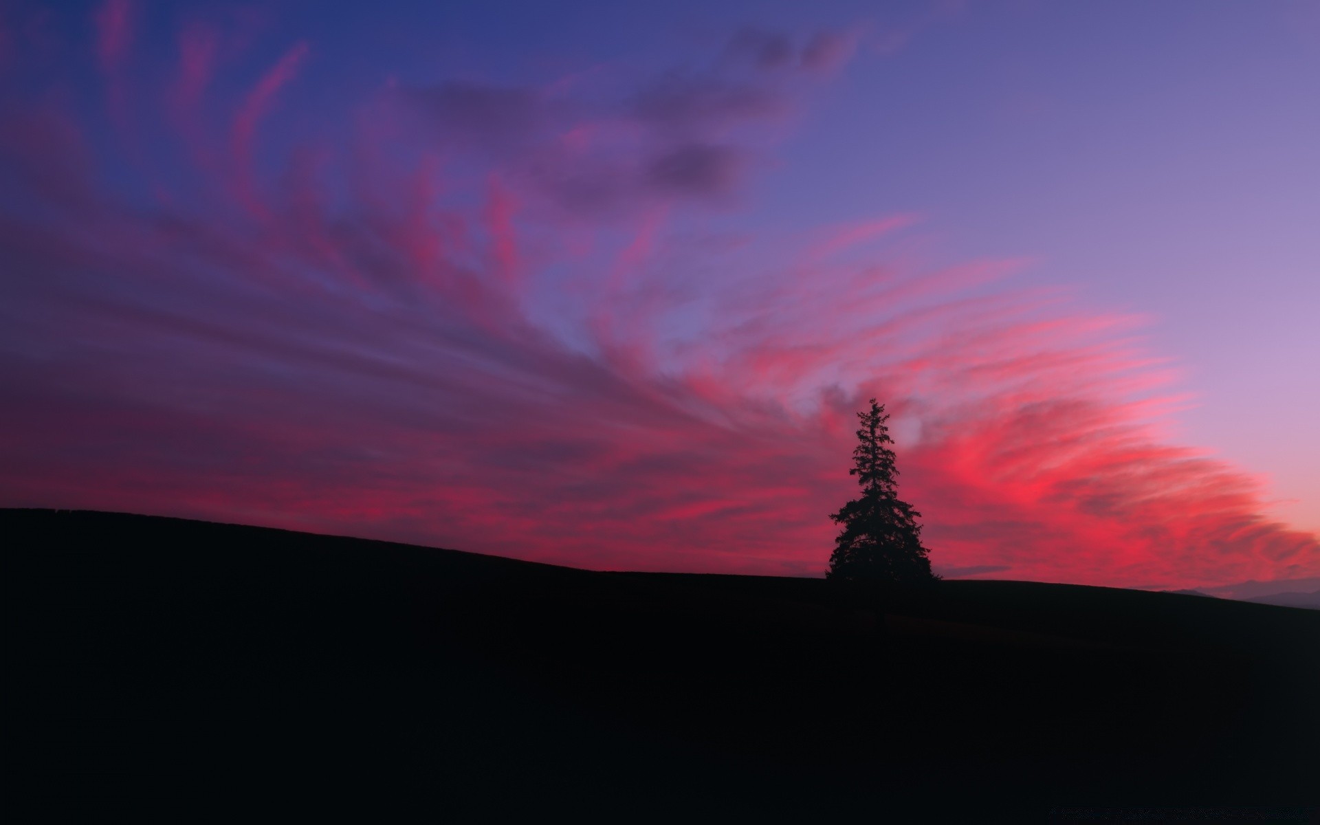 Zachód słońca i ciemne niebo z cieniem z drzewa
