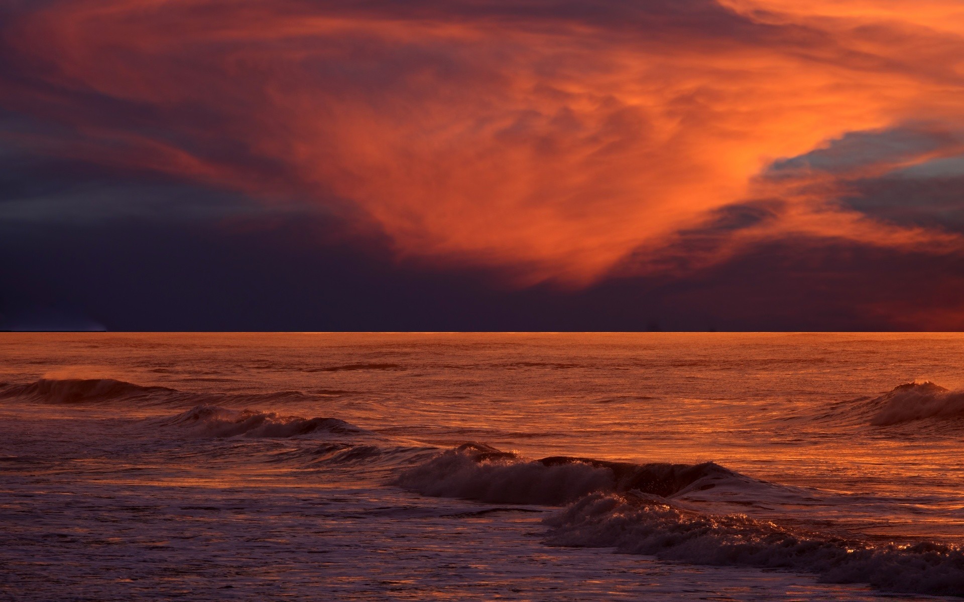 Wieczorny zachód słońca. Mroczne niebo na wodzie