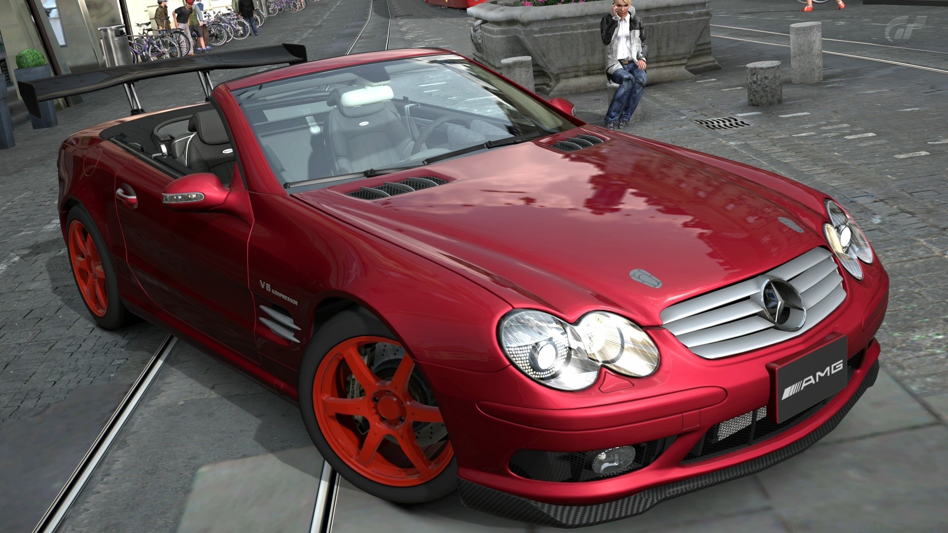 Czerwony samochód wyścigowy stoi w pobliżu otwartej bramy