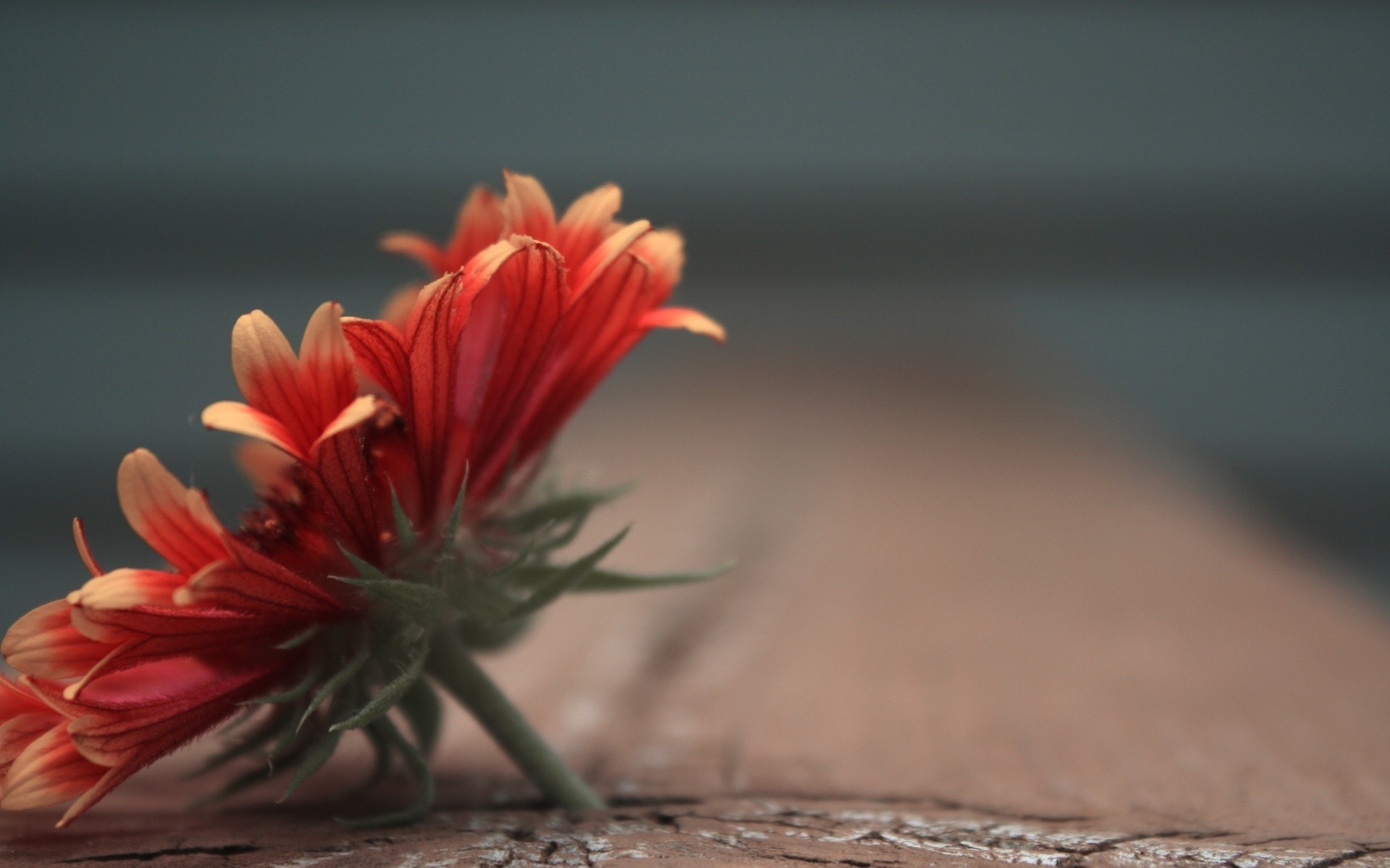 Czerwony kwiat na drewnianej powierzchni