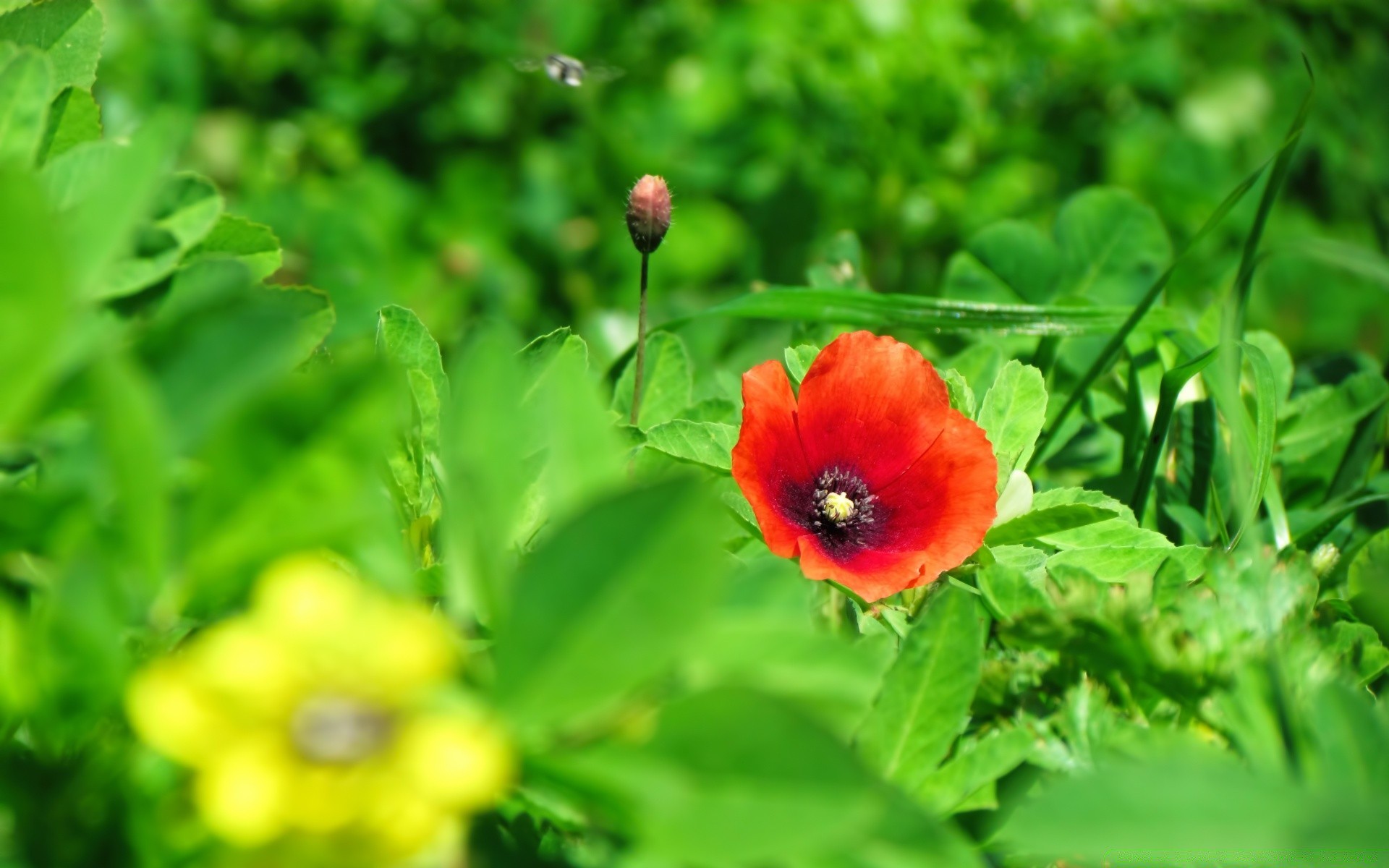 Czerwony kwiat w doniczce na brzoskwiniowym tle