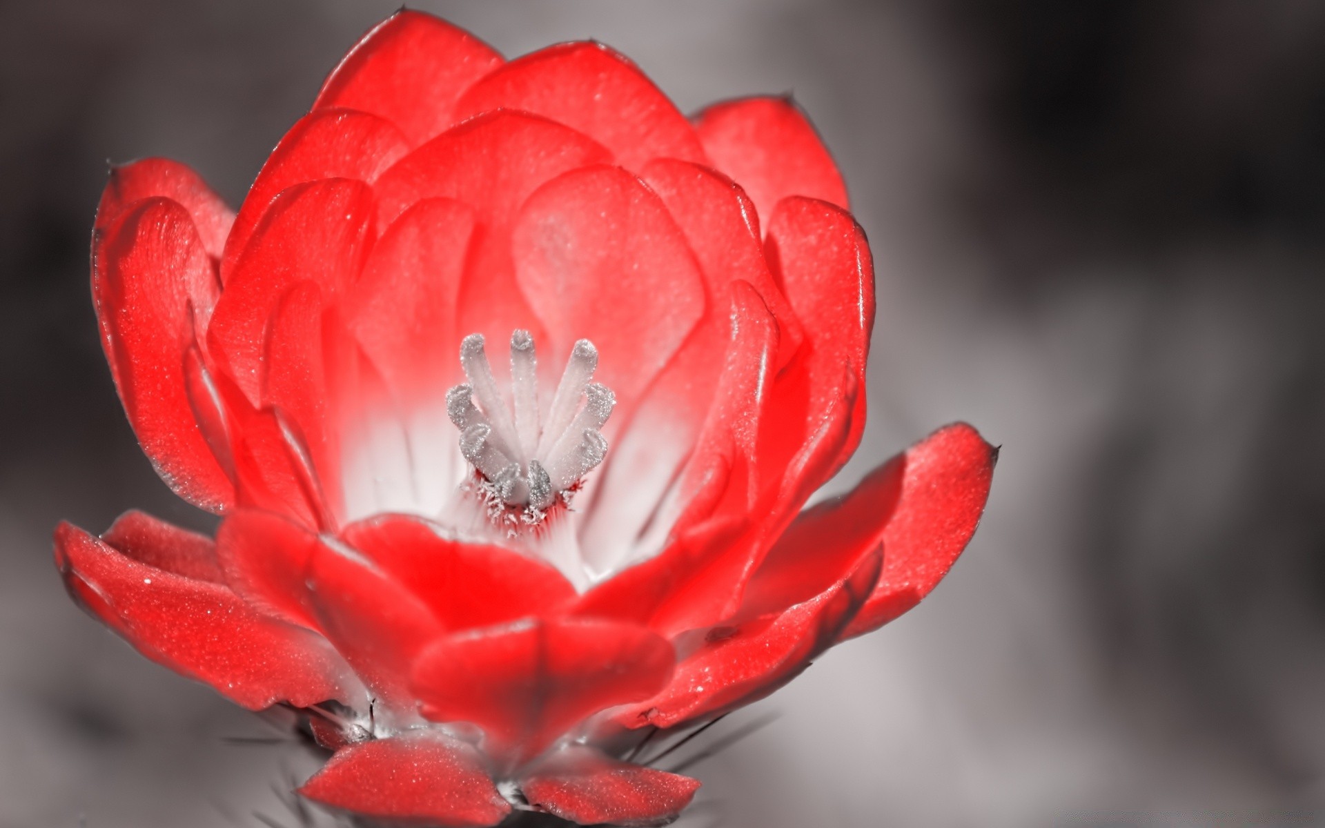 Czerwony kwiat na szarym tle