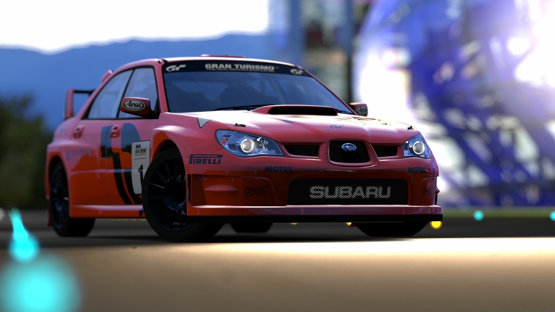 Czerwony samochód wyścigowy stoi w pobliżu otwartej bramy