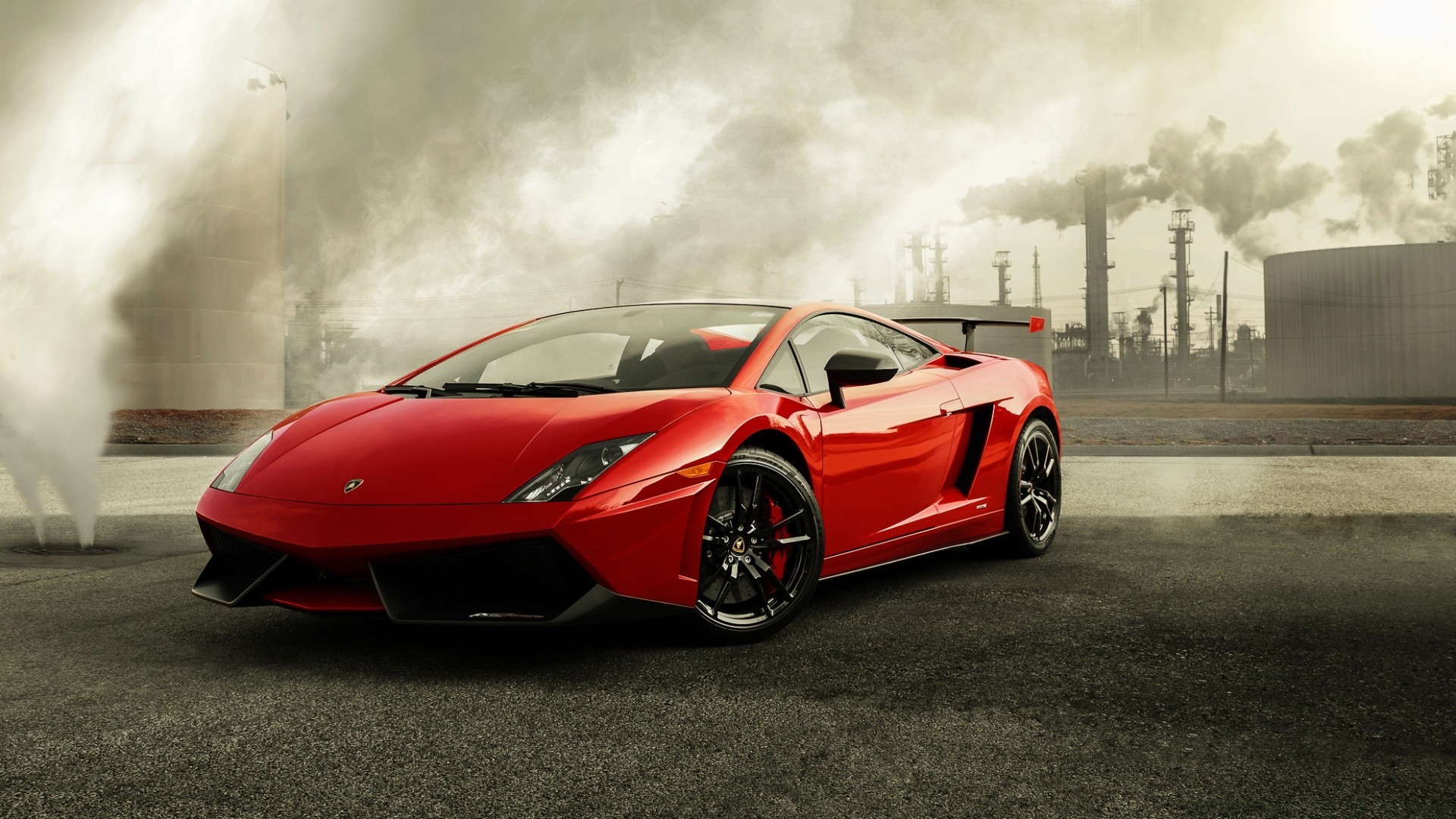 Czerwony supersamochód stoi w śnieżnobiałym hangarze